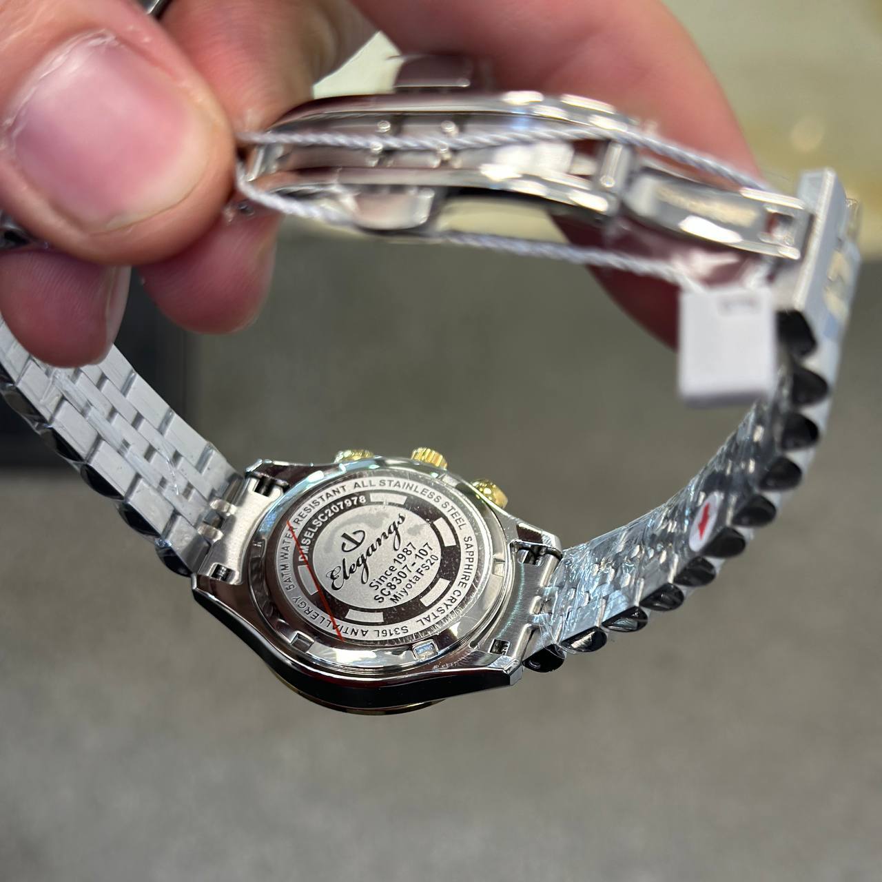 این ساعت زنانه از برند الگنگس، همان چیزی است که دنبالش بودید! با موتور میوتا کرنوگراف دقیق، بند استیل مقاوم و شیشه ضد خش سافایر، این ساعت نه تنها از دوام عالی برخوردار است بلکه طراحی آن شما را در هر جمعی متمایز می‌کند. ضد آب بودن این مدل، به شما این امکان را می‌دهد که با خیال راحت از آن در هر شرایطی استفاده کنید. با ضمانت شرکتی دو ساله و ضمانت مادام العمر اصالت، این ساعت به شما تضمین کیفیت و اصالت می‌دهد. حالا وقتشه که این ساعت شیک و خاص را از سایت ما تهیه کنید و استایل خود را به یک سطح بالاتر ببرید!