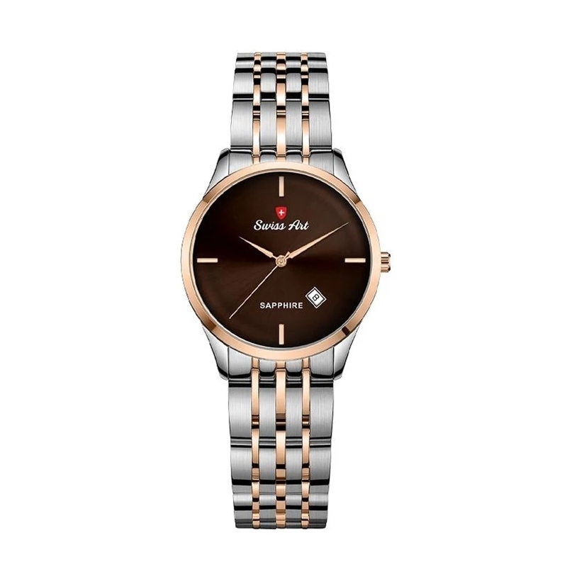 ساعت زنانه سوئیس آرت با موتور ژاپنی دقیق و قابل اعتماد، انتخابی منحصر به فرد برای آقایانی است که به دنبال ترکیبی از ظرافت، کیفیت و عملکرد بی‌نقص هستند. این ساعت شیک با قابلیت نمایش تاریخ، مدیریت زمان را برای شما آسان و کاربردی می‌کند و شیشه ضد خش سافایر آن در برابر خط و خش و ضربه‌های روزمره محافظت می‌نماید تا زیبایی و شفافیت صفحه برای مدت طولانی حفظ شود. ویژگی ضد آب بودن این مدل، امکان استفاده بدون نگرانی در شرایط مختلف را فراهم می‌آورد و بند استیل دو رنگ نقره‌ای و رزگلد، ظاهری لوکس و مدرن به ساعت بخشیده است. با دوسال ضمانت شرکتی و ضمانت مادام العمر اصالت کالا، این ساعت زنانه سوئیس آرت نه تنها تضمینی برای کیفیت و اصالت برند بلکه انتخابی هیجان‌انگیز و خاص برای تکمیل کلکسیون یا هدیه‌ای ماندگار است. اگر به دنبال ساعتی شیک، مقاوم و جذاب هستید که شخصیت و کلاس شما را به بهترین شکل نشان دهد، این مدل فوق‌العاده بهترین گزینه برای شماست!