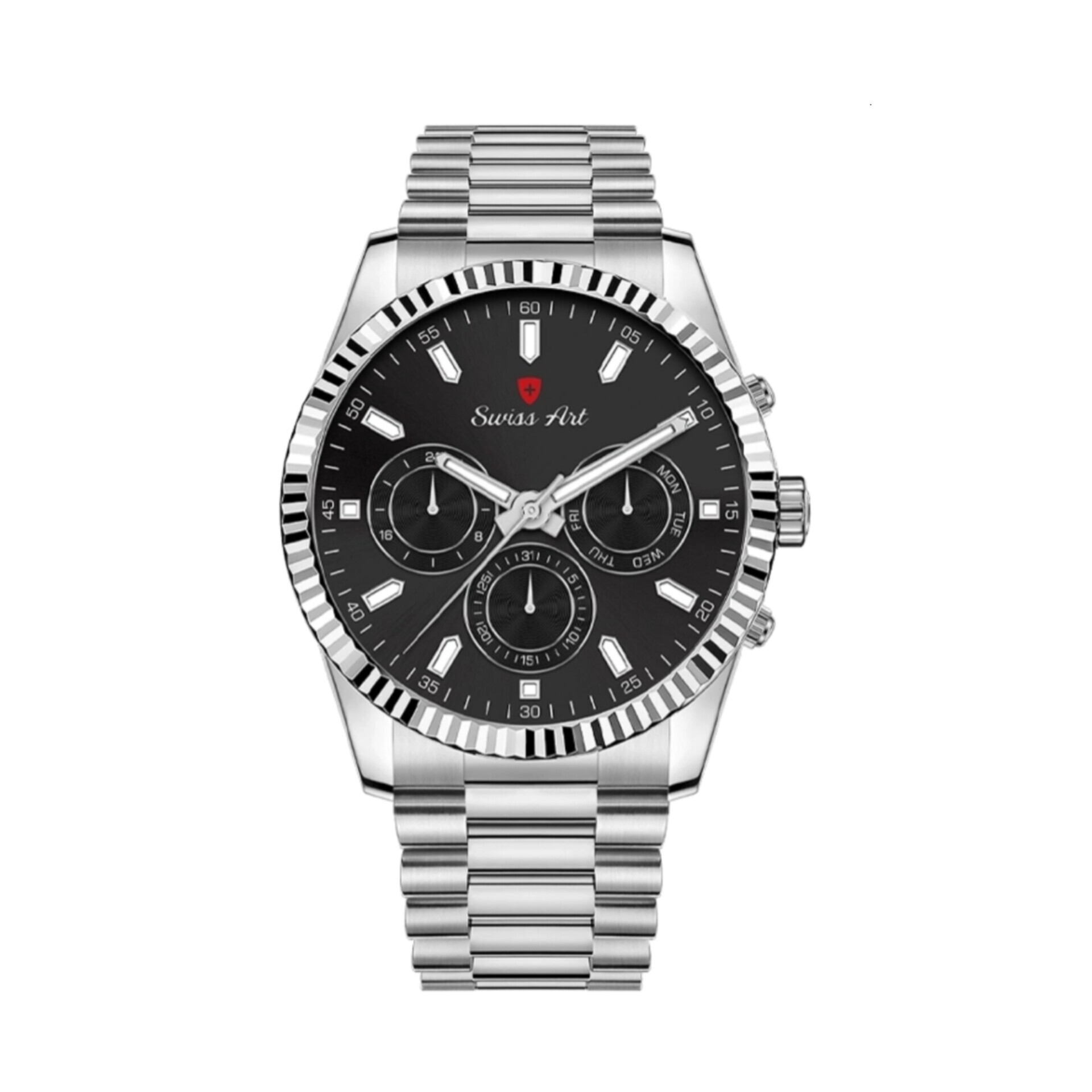این ساعت مردانه از برند سوئیس آرت، نمادی از هماهنگی بین طراحی مدرن و عملکرد دقیق است. با بدنهای زیبا و صفحه نمایش مشکی کلاسیک، این ساعت به شما اجازه میدهد تا با یک ابزار زیبا و قابلیتپذیر، حضور خود را در هر موقعیتی، بهتر نمایش دهید. قلب این ساعت، موتور فول دیت ژاپنی میوتا (Miyota) است که به عنوان نمادی از ثبات و دقت بالا شناخته شدهاست. این ساعت قابلیت نمایش ساعت 24گانه، روز شماره هفته و تقویم را داراست، که آن را مناسب برای استفادههای روزمره و حرفهای میکند. صفحه نمایش مشکی با خطوط سفید، ظاهری شیک و کلاسیک به این ساعت میدهد که با تمامی ستهای مختلف هماهنگ میشود. شیشه ساعت از مواد ضد خش سافایر (Sapphire Crystal) ساخته شده است، که مقاومت بالایی در برابر ضربات و خوردگی دارد. همچنین، ویژگی ضد آب این ساعت، اطمینان استفاده راحت در شرایط مختلف را فراهم میکند. سوئیس آرت این محصول را با 2 سال ضمانت شرکتی و ضمانت مادامالعمر اصالت کالا ارائه میدهد، تا خرید شما بدون هیچ نگرانی همراه باشد. این ساعت، انتخاب ایدهآلی برای مردانی است که به دنبال یک اکسسوری هوشمند، لوکس و با کیفیت هستند. **بهترین انتخاب برای افرادی که به سبک واقعی و کیفیت عالی علاقه دارند!**