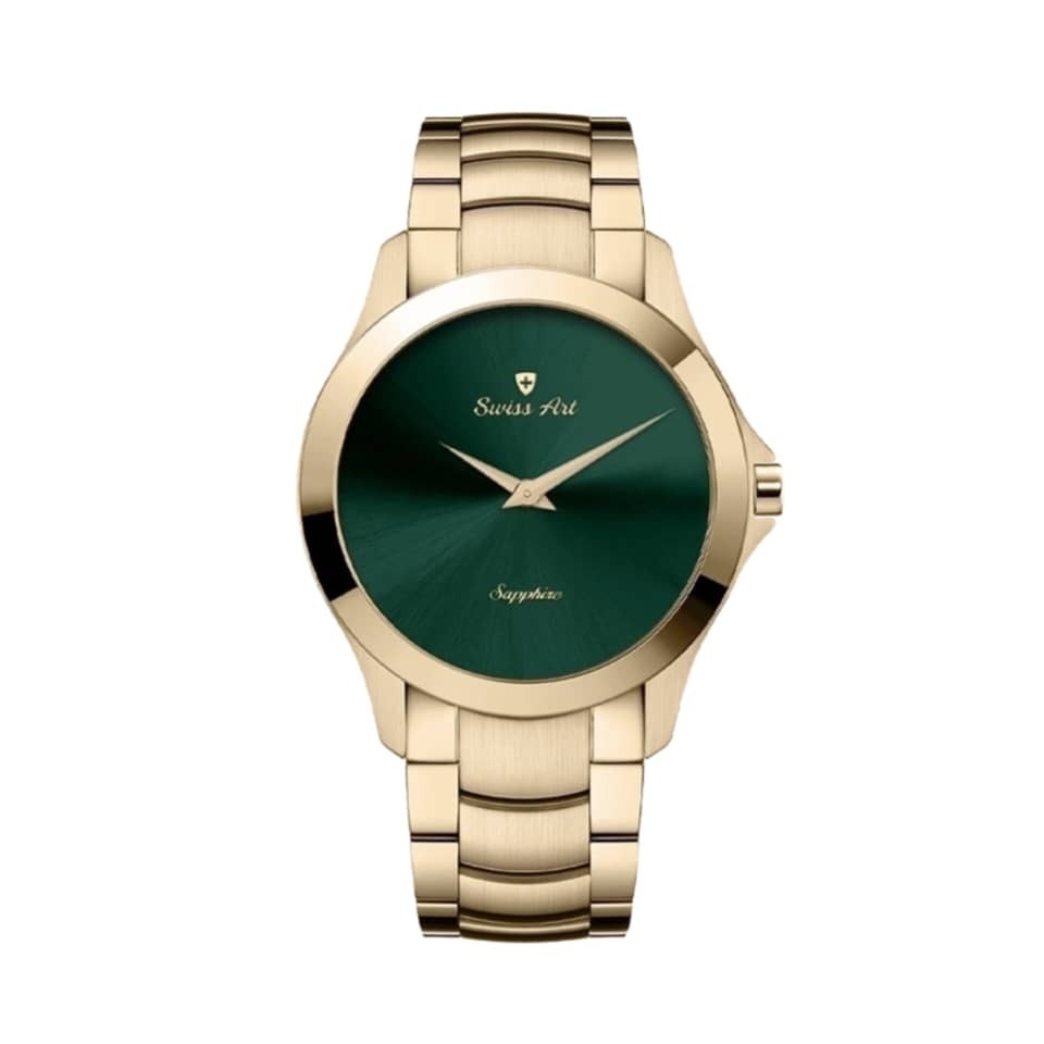 با ساعت مچی مردانه سوئیس آرت، شکوه طلا و اصالت طراحی مینیمال را هم‌زمان تجربه کنید. این مدل با صفحه سبز لاکچری و بدنه تمام‌استیل طلایی، نمادی از وقار و سبک مدرن مردانه است. قلب تپنده‌ی آن، موتور دقیق سوئیسی است که عملکردی بی‌نقص را تضمین می‌کند. شیشه‌ی ضد خش سافایر و قابلیت ضد آب بودن، این ساعت را برای استفاده روزمره و رسمی ایده‌آل ساخته‌اند. همراه با دو سال ضمانت شرکتی و ضمانت مادام‌العمر اصالت کالا، این ساعت انتخابی وسوسه‌کننده برای آقایانی‌ست که به کیفیت، زیبایی و اعتبار اهمیت می‌دهند. همین حالا به استایل خود اعتبار ببخشید!