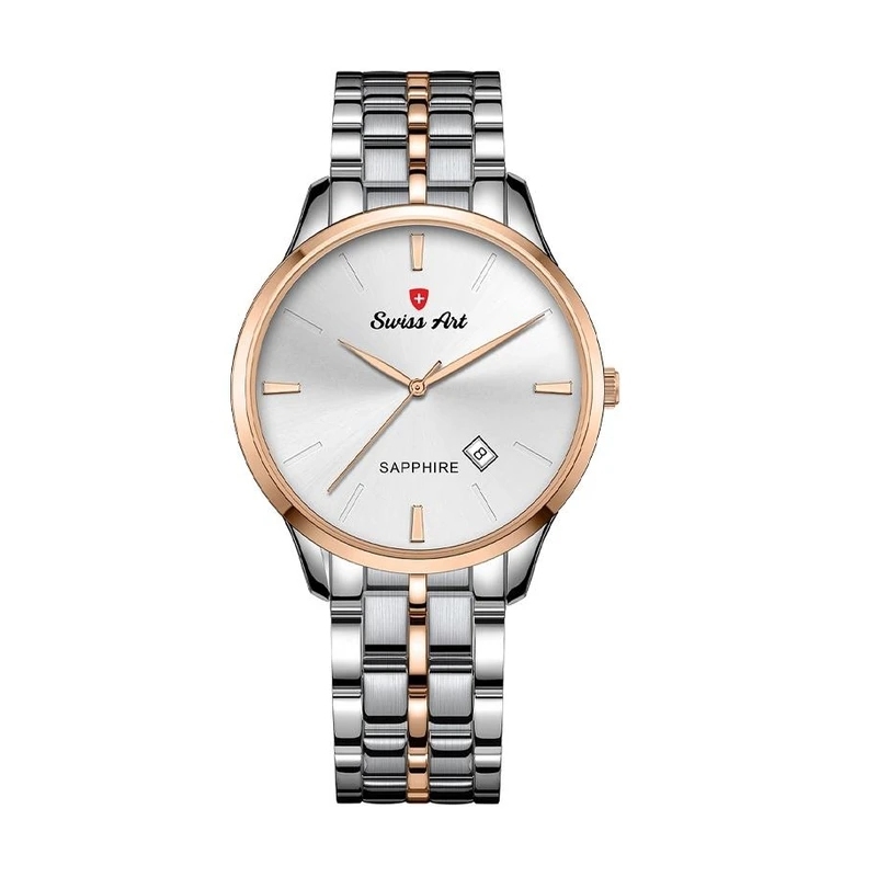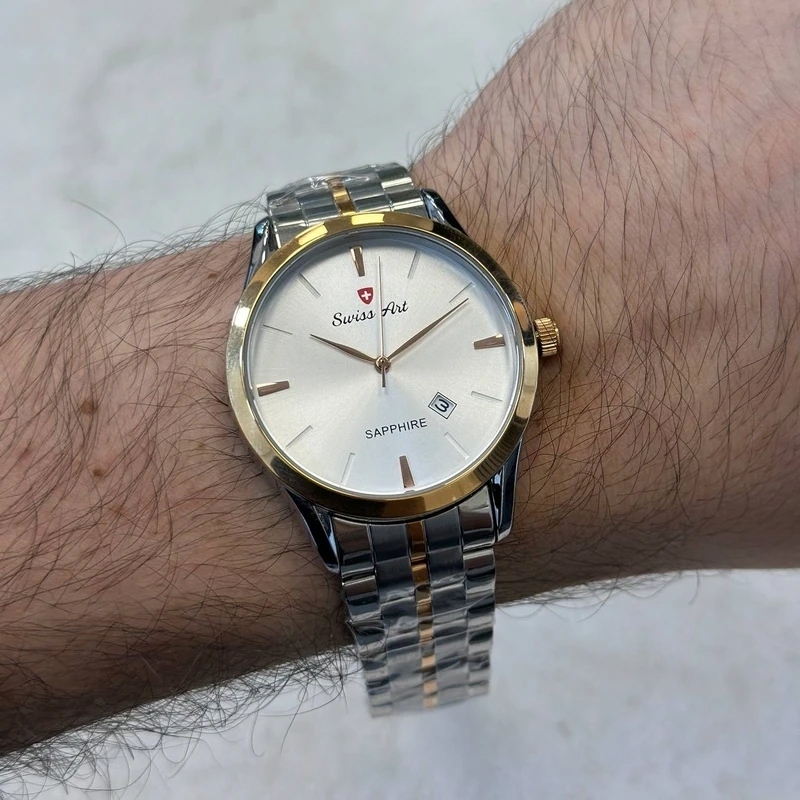 ساعت مردانه سوئیس آرت با موتور ژاپنی دقیق و قابل اعتماد، انتخابی بینظیر برای آقایانی است که به دنبال ترکیبی از ظرافت، کیفیت و کارایی هستند. این ساعت با قابلیت نمایش تاریخ، امکان مدیریت آسان و کاربردی زمان را به شما میدهد و با شیشه ضد خش سافایر، در برابر خط و خش و ضربههای روزمره محافظت میشود تا زیبایی و شفافیت صفحه برای مدتها حفظ گردد. ویژگی ضد آب بودن این مدل، امکان استفاده مطمئن و بدون نگرانی در شرایط مختلف را فراهم میآورد. بند استیل دو رنگ نقرهای و رزگلد، ظاهری لوکس و مدرن به ساعت بخشیده و استایل شما را تکمیل میکند. با دوسال ضمانت شرکتی و ضمانت مادام العمر اصالت کالا، این ساعت مردانه سوئیس آرت نه تنها نمادی از کیفیت و اصالت برند بلکه انتخابی هیجانانگیز و خاص برای تکمیل کلکسیون یا هدیهای ماندگار است. اگر به دنبال ساعتی شیک، مقاوم و جذاب هستید، این مدل فوقالعاده بهترین گزینه برای شماست!