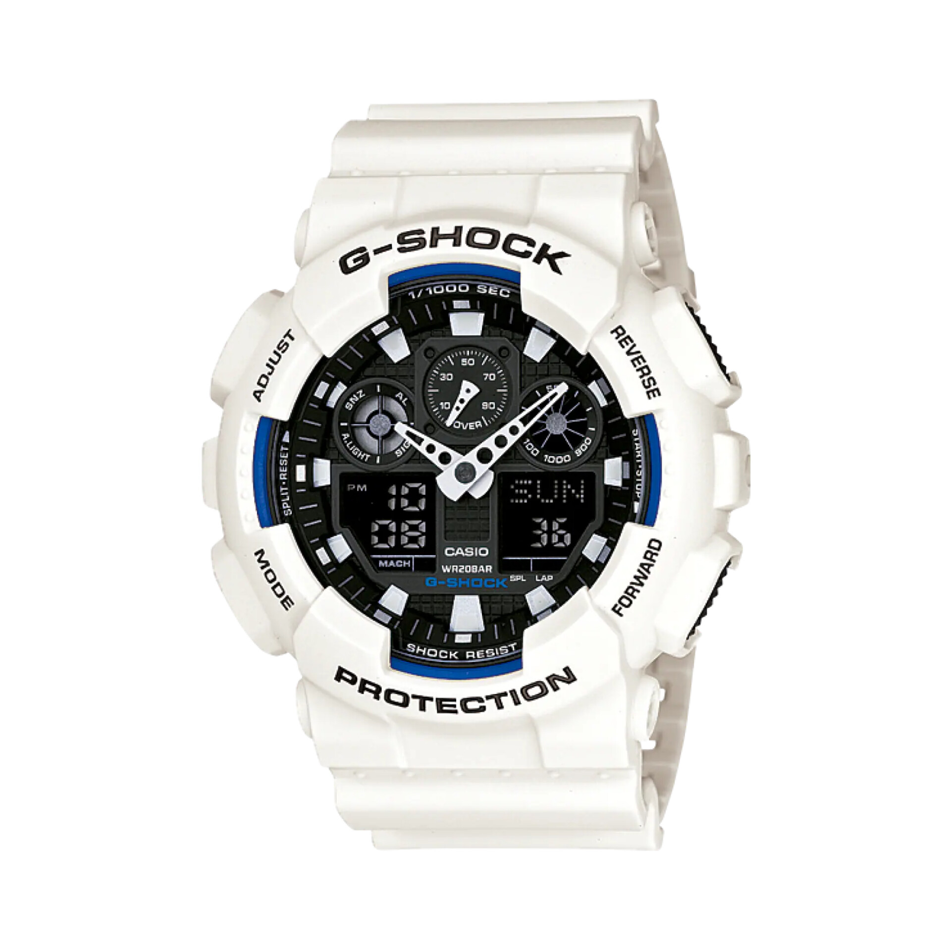 اگر به دنبال ساعتی هستید که هم ظاهر کلاسیک داشته باشد و هم ویژگی‌های مدرن، ساعت مچی مردانه جی‌شاک مدل GA-100B-7ADR همان چیزی است که نیاز دارید. این ساعت با بدنه و بند مشکی از جنس رزین و وزن بسیار سبک ۷۰ گرم، روی مچ دست شما احساس راحتی و سبکی می‌دهد. با طراحی بزرگ و جذاب خود، به استایل شما جلوه‌ای اسپرت و متمایز می‌بخشد. این ساعت برای مقاومت در برابر سخت‌ترین شرایط طراحی شده است و با مقاومت فوق‌العاده در برابر ضربه، میدان مغناطیسی و آب تا ۲۰۰ متر، یک همراه قابل اعتماد برای برنامه‌های روزانه و ورزشی شماست. با داشتن نور پس‌زمینه LED، نمایشگر سرعت، کرونومتر دقیق ۱/۱۰۰۰ ثانیه، زمان جهانی، ۵ آلارم روزانه و تایمر شمارش معکوس، یک ابزار کامل و کاربردی است. با وجود این همه امکانات، عمر باتری آن حدود ۲ سال است و این ساعت با گارانتی مادام‌العمر اصالت کالا و گارانتی یک‌ساله شرکتی به فروش می‌رسد، تا از اصالت و کیفیت آن مطمئن باشید.