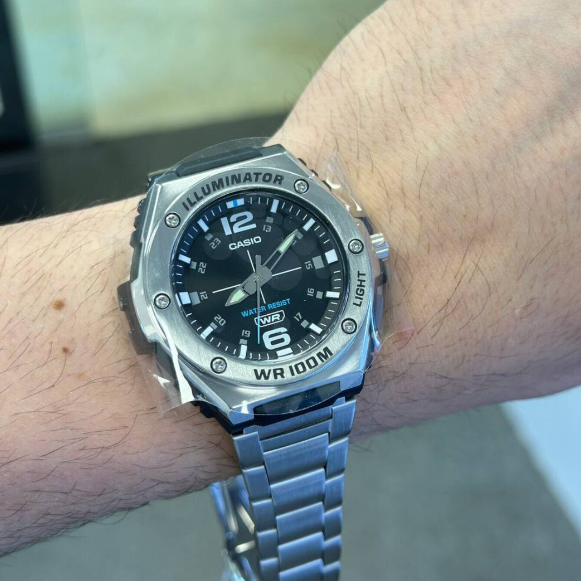 یک ساعت دیجیتال با طراحی جذاب و امکانات کامل، بهترین گزینه برای هر فرد پرتحرک و مدرن است. ساعت مچی مردانه کاسیو مدل MWA-100HD-1AVDF از لاین کاسیو جنرال، همان چیزی است که به دنبالش بوده‌اید. این مدل با ظاهر اسپرت و قطر صفحه ۴۲ میلی‌متری، روی مچ دست شما به زیبایی خودنمایی می‌کند و با مقاومت در برابر آب تا 10ATM، به شما اجازه می‌دهد با خیال راحت در فعالیت‌های روزمره و ورزشی از آن استفاده کنید. این ساعت نه تنها یک اکسسوری زیبا، بلکه یک سرمایه‌گذاری هوشمندانه روی کیفیت و اصالت است. با نور پس‌زمینه LED، زمان‌سنج جهانی، کرونومتر دقیق، تایمر شمارش معکوس و چندین آلارم روزانه به یک همراه کامل و کاربردی تبدیل شده است. با گارانتی مادام‌العمر اصالت کالا و گارانتی یک‌ساله شرکتی، با اطمینان کامل خرید کنید.