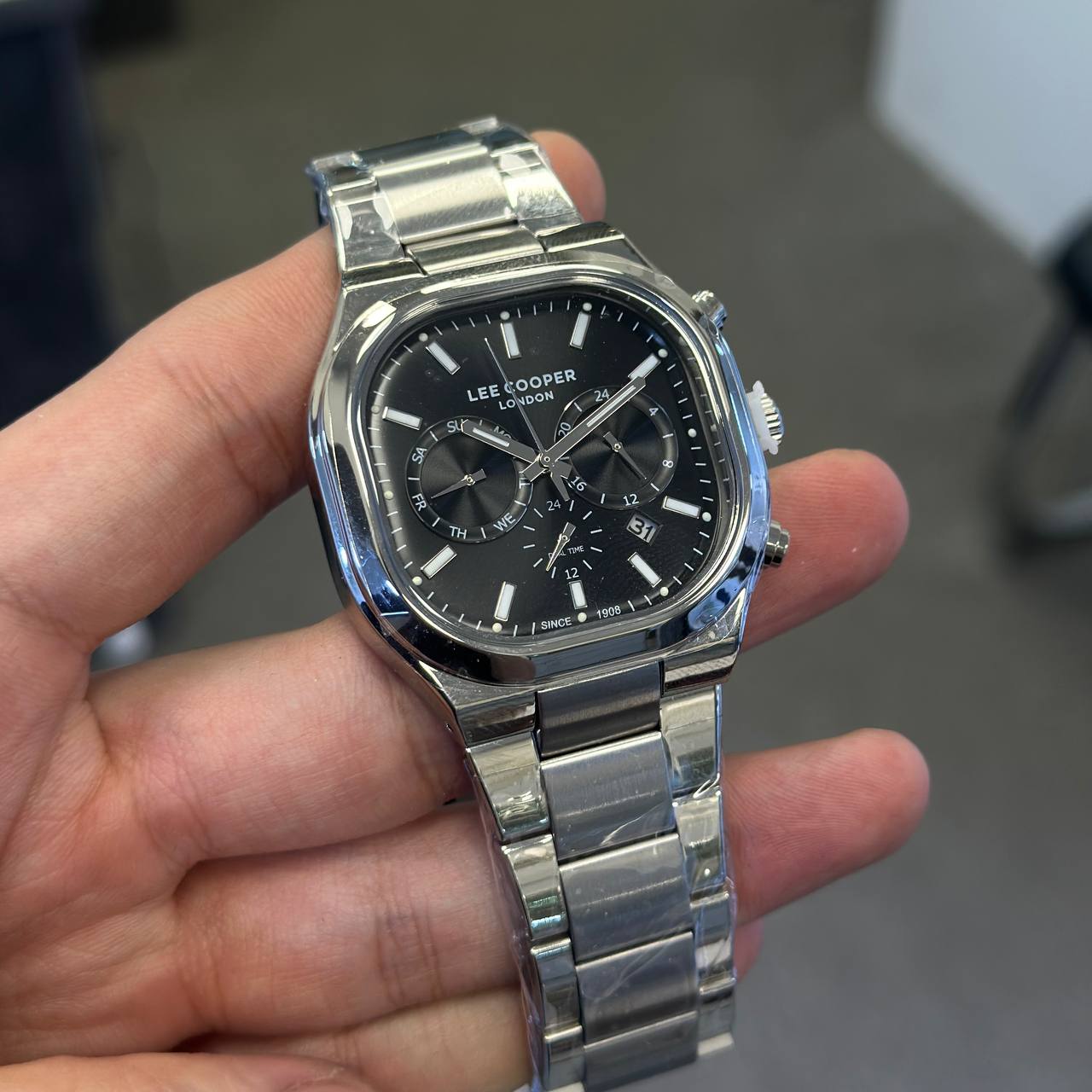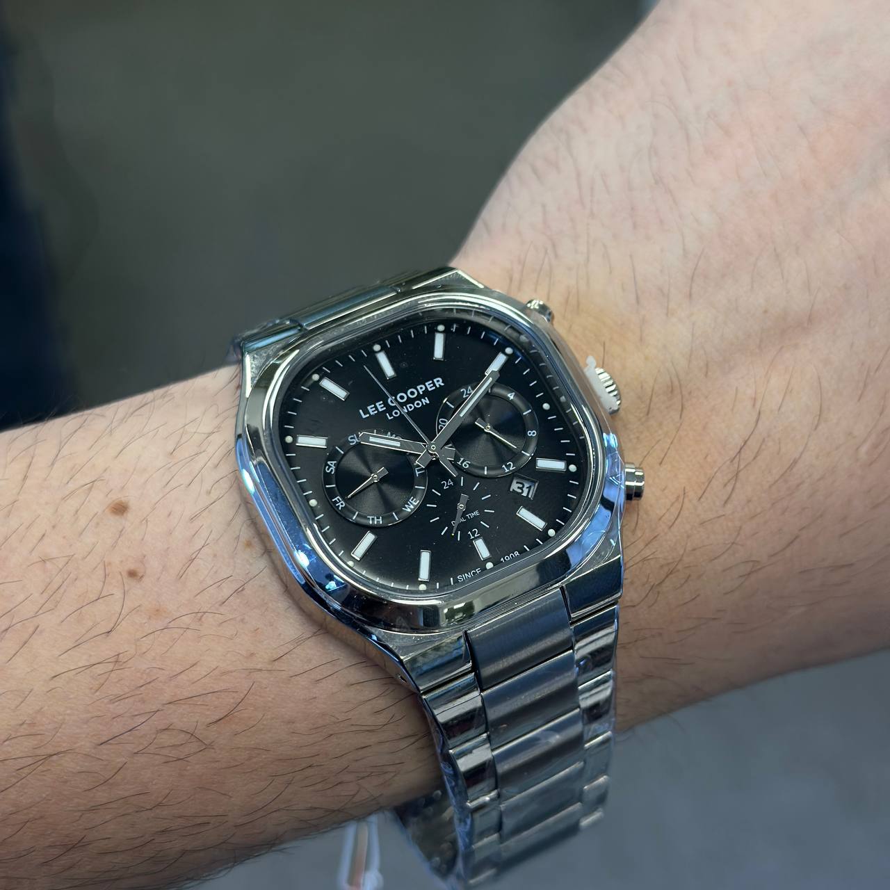 دنبال هدیه‌ای هستید که هم خاص باشه و هم با هر سلیقه‌ای جور دربیاد؟ ساعت لی کوپر مدل LC08169.350، با صفحه مربع مشکی و بند و بدنه استیل نقره‌ای، نمادی از تمایز و سلیقه‌ای مدرن است! این ساعت، هم با تیپ‌های اسپرت ست می‌شود و هم با استایل‌های کلاسیک، هر استایلی را ارتقا می‌دهد.