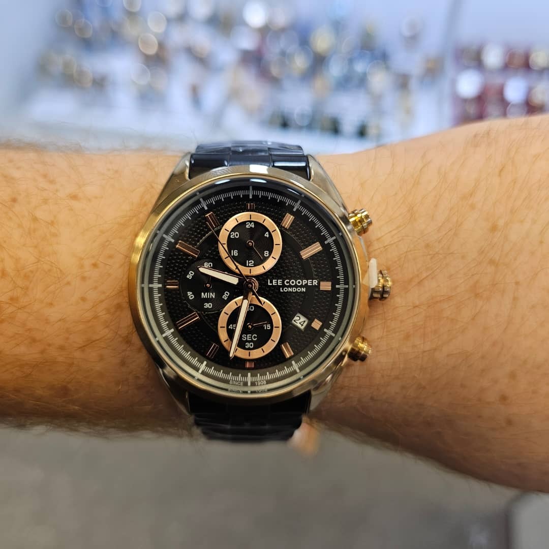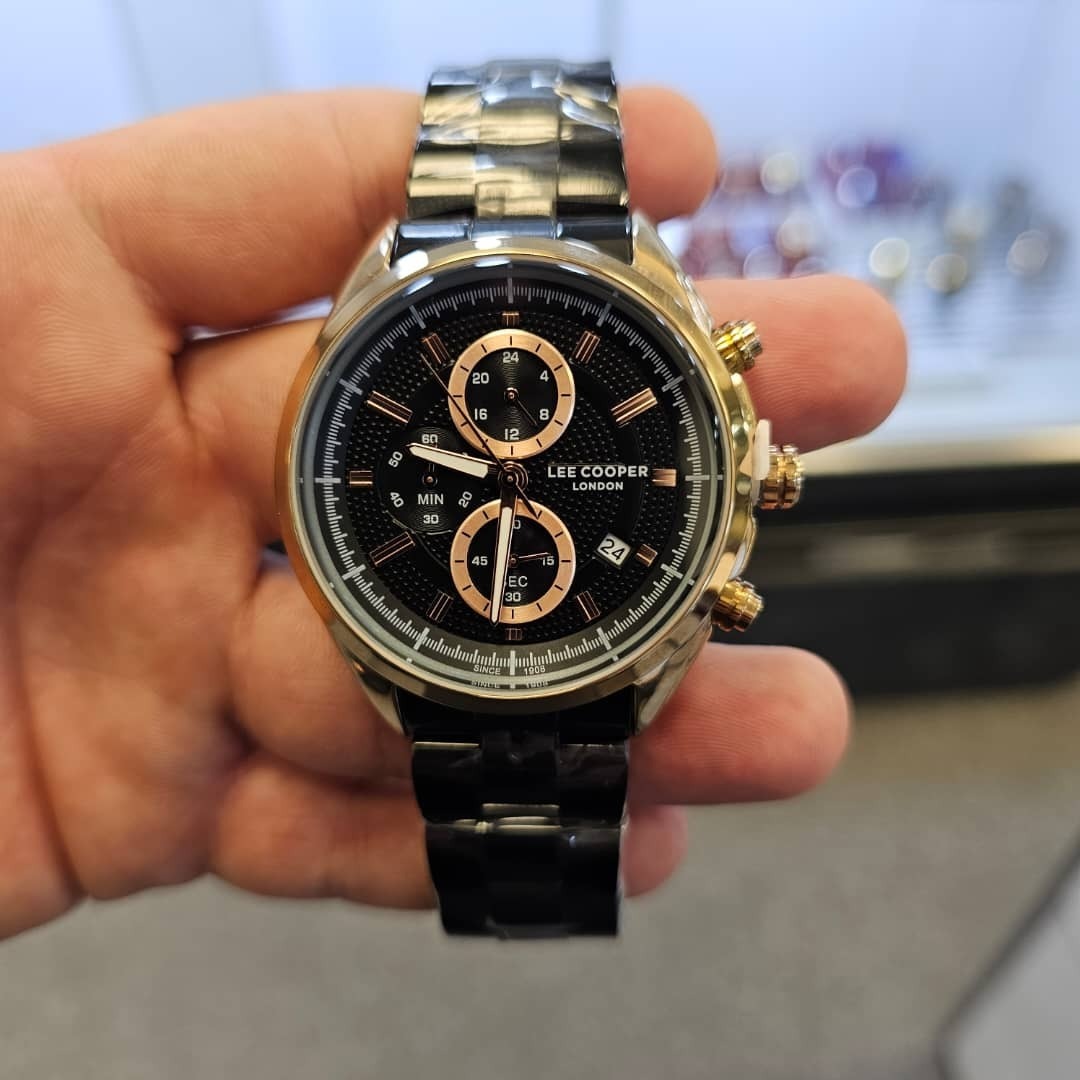 با ساعت لی کوپر مدل LC07399.450، درخشش رزگلد و ابهت مشکی را یکجا هدیه دهید! این ساعت، با طراحی خاصش، هم با تیپ اسپرت شما جور است، هم کلاسیک.