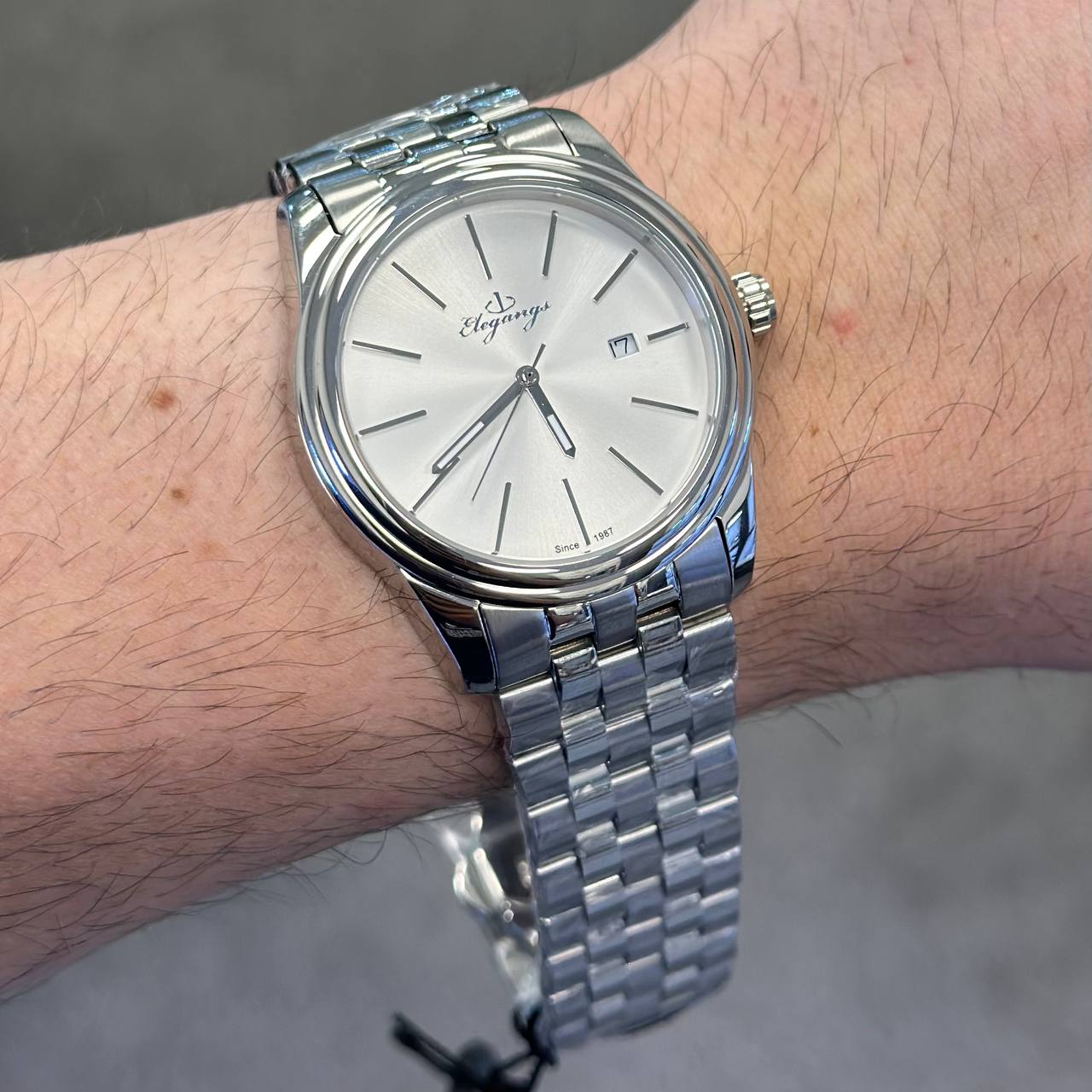 ساعت مچی مردانه برند الگنگس (Elegangs) با طراحی مینیمال و شیک، انتخابی ایده‌آل برای آقایانی است که به ظرافت و کیفیت اهمیت می‌دهند. این ساعت به موتور دقیق و قابل اعتماد ژاپنی MIYOTA مجهز بوده و با بند استیل مقاوم، شیشه ضد خش سافایر و قابلیت ضد آب، دوام بالایی را در کنار زیبایی فراهم می‌کند. همراه با دو سال ضمانت شرکتی و ضمانت مادام‌العمر اصالت کالا، این محصول اصیل گزینه‌ای مطمئن برای استفاده روزمره یا هدیه‌ای خاص محسوب می‌شود.