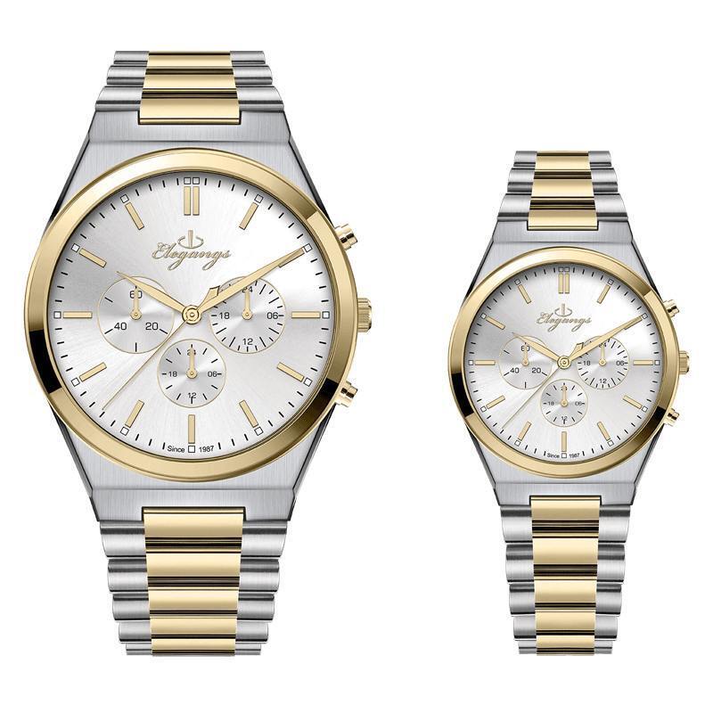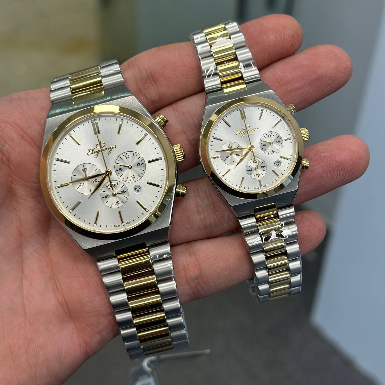 ست ساعت مردانه و زنانه الگنگس، انتخابی بی‌نظیر برای زوج‌هایی است که می‌خواهند استایلی مشترک و شیک داشته باشند! این ساعت‌ها با موتور میوتا کرنوگراف دقیق، بند استیل مقاوم و شیشه ضد خش سافایر طراحی شده‌اند تا شما را در هر لحظه با دقت و زیبایی همراهی کنند. قابلیت ضد آب بودن این ساعت‌ها، آن‌ها را برای استفاده در هر شرایطی مناسب می‌سازد. طراحی جذاب و لوکس با رنگ‌های نقره‌ای و طلایی، هر نگاه را به خود جلب می‌کند و به استایل شما شخصیت می‌بخشد. این ست ساعت با ضمانت دو ساله شرکتی و ضمانت مادام العمر اصالت، ترکیبی از کیفیت و اعتماد است که می‌توانید از آن در هر زمان لذت ببرید. همین حالا فرصت را از دست ندهید و با این انتخاب خاص، دنیای خود را به یک سطح جدید ببرید!