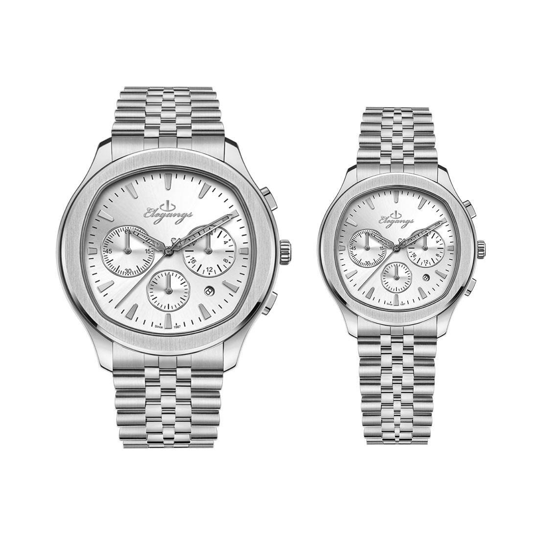 ست ساعت مردانه و زنانه الگنگس، انتخابی بینظیر برای کسانی است که میخواهند استایلی هماهنگ و شیک داشته باشند. این ساعتها با موتور میوتا کرنوگراف دقیق و بند استیل مقاوم، به شما زیبایی و عملکرد عالی را هدیه میدهند. شیشه ضد خش سافایر و طراحی ضد آب آن، این ساعتها را به انتخابی فوقالعاده برای استفاده روزانه و در هر شرایطی تبدیل کرده است. با ضمانت شرکتی دو ساله و ضمانت مادام العمر اصالت، این ست ساعت نه تنها به شما اعتماد به نفس میدهد بلکه یک انتخاب لوکس برای زوجهای خوش سلیقه است. همین حالا این ست ساعت زیبا را از سایت ما خریداری کنید و به دنیای الگنگس بپیوندید!