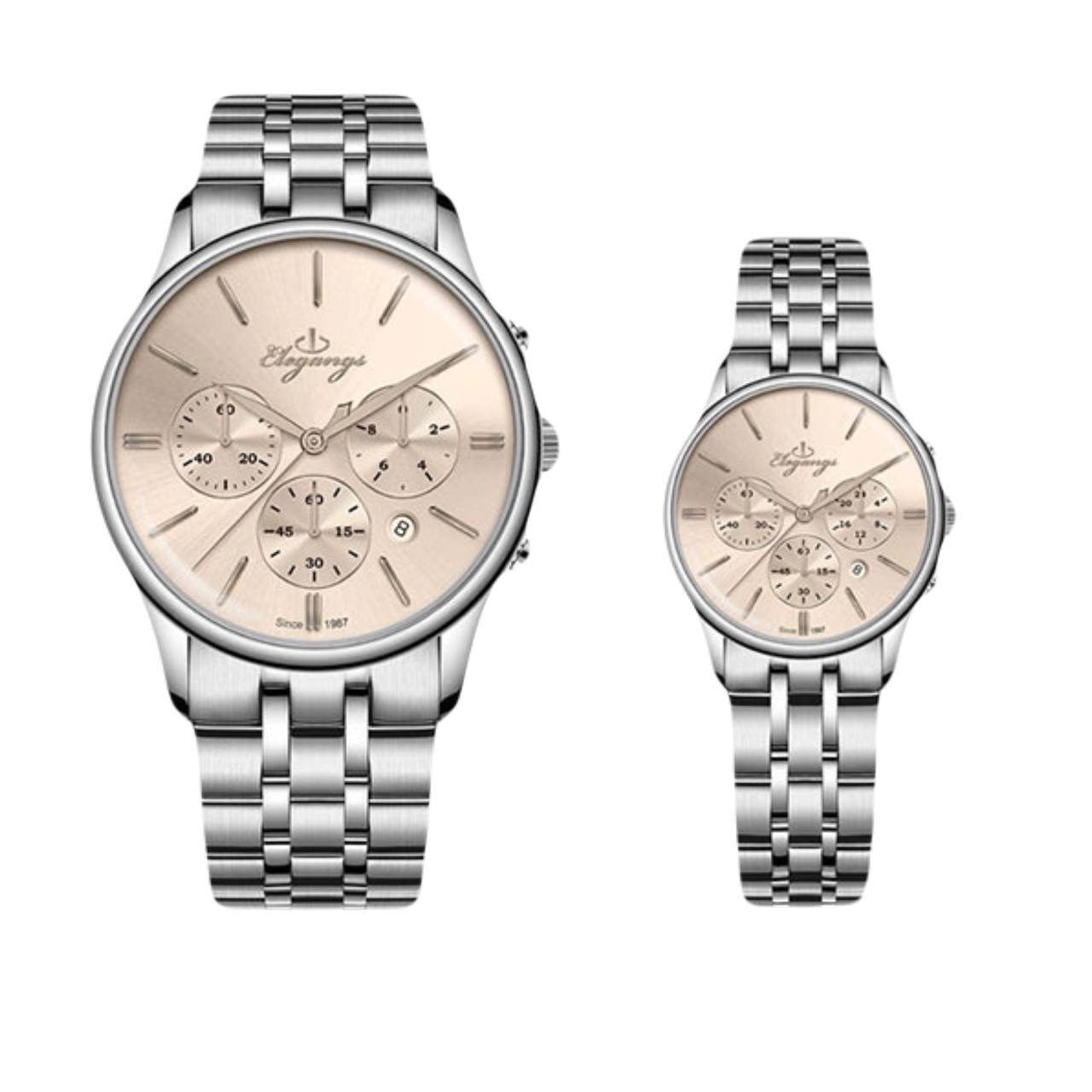 ست ساعت مردانه و زنانه الگنگس، یک انتخاب استثنایی برای کسانی است که به دنبال ترکیب زیبایی، دقت و کیفیت در یک محصول لوکس هستند. با موتور میوتا کرنوگراف با عملکرد دقیق و بی‌نظیر، این ساعت‌ها زمان را با دقتی بی‌مانند برای شما اندازه‌گیری می‌کنند. بند استیل ضد زنگ و شیشه ضد خش سافایر، این ساعت‌ها را به محصولی مقاوم در برابر هرگونه آسیب محیطی تبدیل کرده است. طراحی شیک و کلاسیک این ست، علاوه بر زیبایی، نمادی از استحکام و سلیقه است. ضد آب بودن و ضمانت دو ساله شرکتی به همراه ضمانت مادام‌العمر اصالت، به شما اطمینان می‌دهد که هر لحظه از استفاده از این ساعت‌ها، تجربه‌ای متفاوت و خاص خواهید داشت. ست الگنگس، هدایای عالی برای شما و شریک زندگی‌تان!