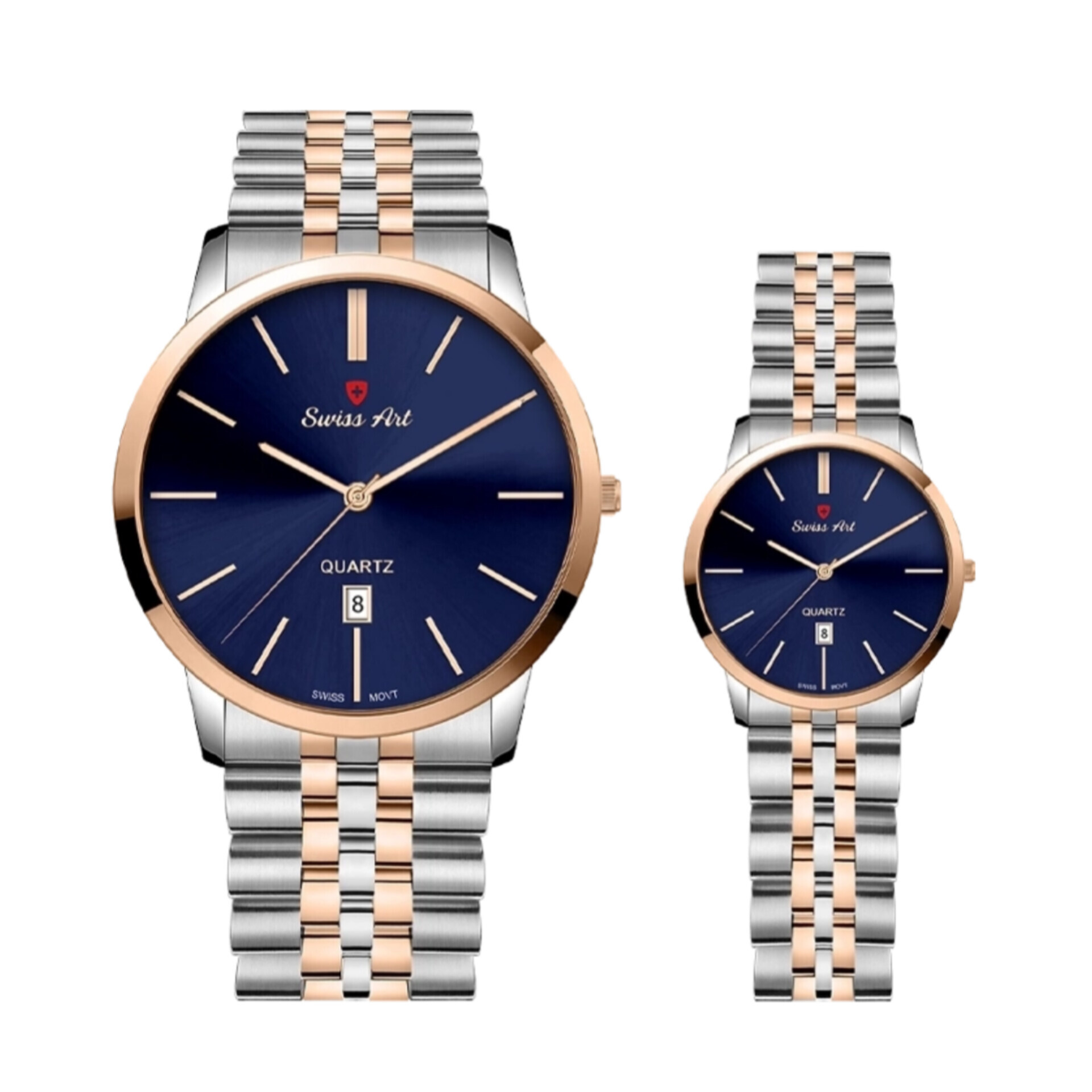 ست ساعت مردانه و زنانه سوئیس آرت، انتخابی لوکس و شیک برای کسانی است که به دقت و استایل اهمیت می‌دهند. این ساعت‌ها با موتور سوئیسی روندا که از دقت و کیفیت بالا برخوردار است، قابلیت نمایش تاریخ را در کنار طراحی جذاب خود به شما ارائه می‌دهند. صفحه سرمه‌ای و شیشه ضد خش سافایر، زیبایی و دوام ساعت‌ها را تضمین می‌کند و بند استیل آن، جلوه‌ای خاص به این ست داده است. این ساعت‌ها ضد آب هستند و با دو سال ضمانت شرکتی و ضمانت مادام‌العمر اصالت کالا، خریدی مطمئن و بدون نگرانی را برای شما فراهم می‌آورند. همین حالا این ست منحصر به فرد را از فروشگاه ما خریداری کنید و استایلی متفاوت و بی‌نظیر را تجربه کنید!