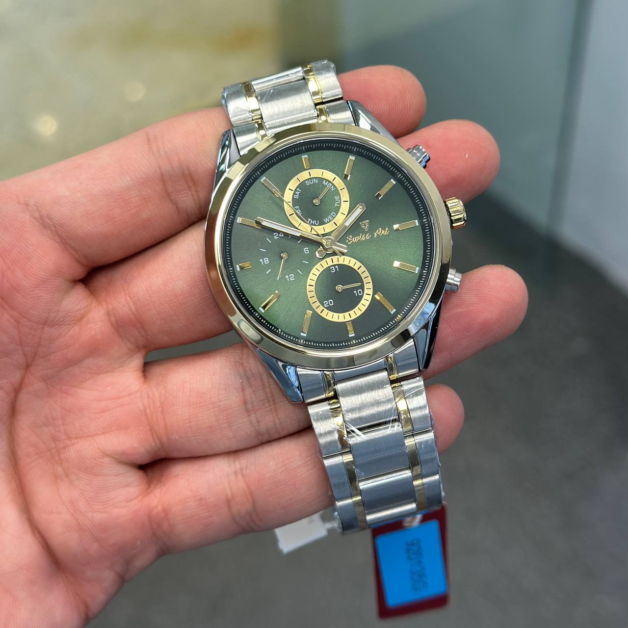 ست ساعت زنانه و مردانه از برند **سوئیس آرت** با موتور میوتا ژاپنی فول تایم، نمادی از کیفیت، دقت و طراحی شیک است. ساعت‌ها مجهز به قابلیت نمایش ساعت بیست و چهار ساعته، روز شماره هفته و تقویم هستند، که به شما اطمینان می‌دهد که هر لحظه روزانه را به صورت دقیق و منظم پیگیری کنید. شیشه ضد خش سافایر (Sapphire Crystal) و مقاومت در برابر آب، این ساعت‌ها را به محصولاتی مدرن تبدیل می‌کند که بهترین عملکرد را حتی در شرایط سخت روزمره ارائه می‌دهند. با طراحی لوکس و کلاسیک، این ساعت‌ها به عنوان یک اکسسوری اصلی و ضروری برای تمامی مناسبات، از مهمانی‌ها تا روزانه‌ها، مناسب هستند. به همراه **دو سال ضمانت شرکتی** و **ضمانت مادام العمر اصالت کالا**، این ست ساعت به شما اطمینان از ارزش و کیفیت بالا را می‌دهد. این محصولات از یک برند مشهور و با سابقه، به شما اجازه می‌دهد که به عنوان یک اکسسوری زیبایی واقعی و همچنین یک ابزار دقیق، از این ساعت‌ها استفاده کنید. از امروز، بهترین انتخاب برای خود و عزیزانتان را با ست ساعت زنانه و مردانه سوئیس آرت دریافت کنید و به دنبال یک اکسسوری که هم زیباست و هم عملکرد بالایی دارد، نگاه کنید. این ست ساعت، انتخابی استثنایی برای هر کسی است که به دنبال یک ابزار دقیق و زیبا هستند. این محصولات به شما اطمینان می‌دهند که هر لحظه روزانه را به صورت دقیق و زیبا پیگیری کنید.