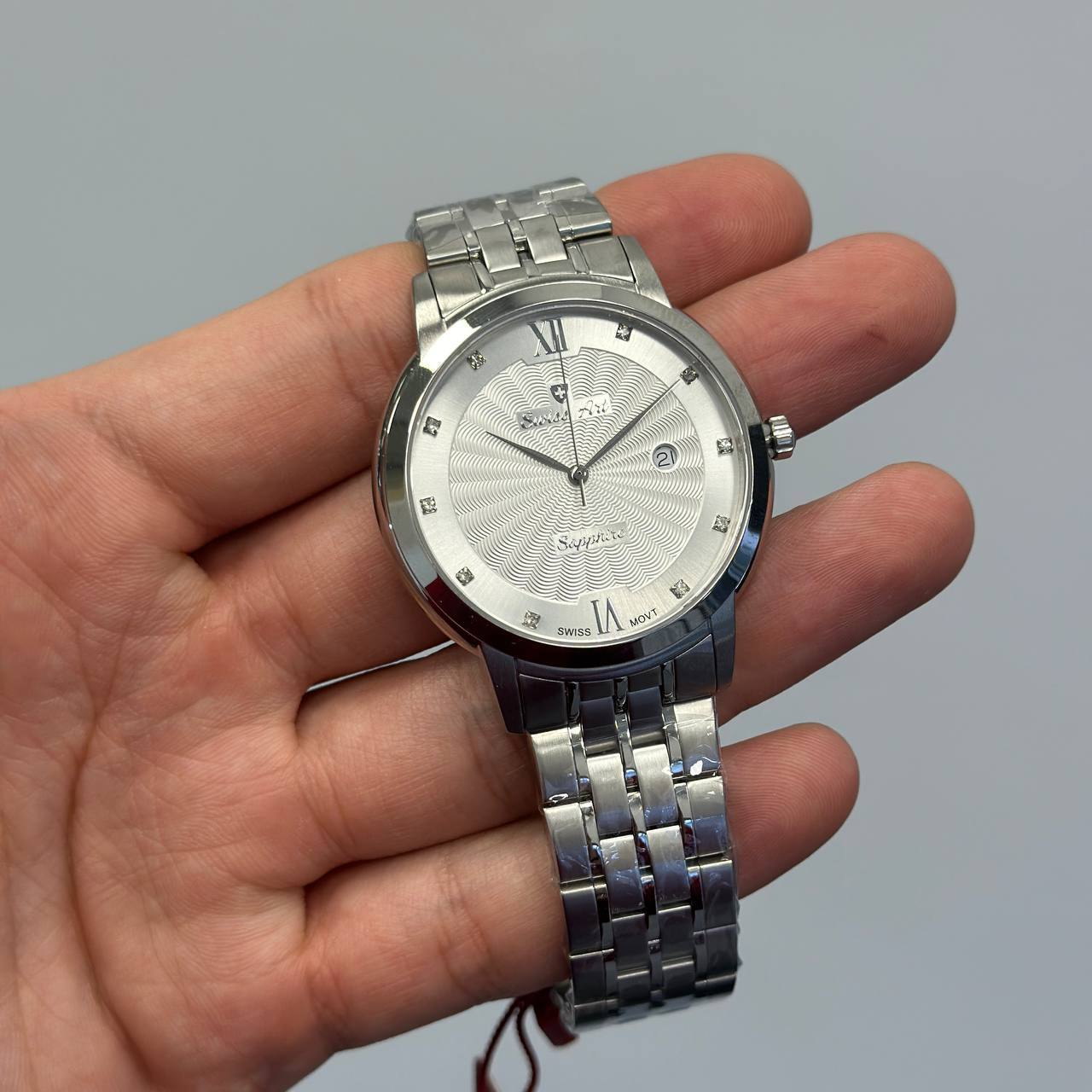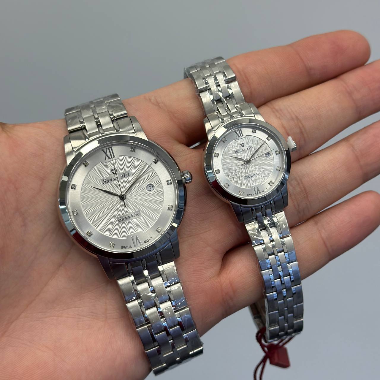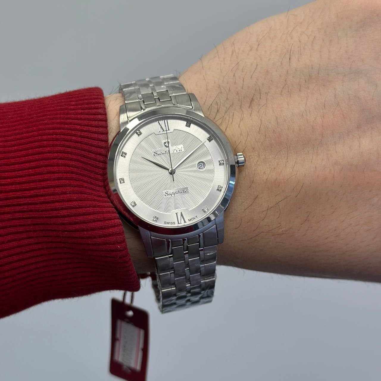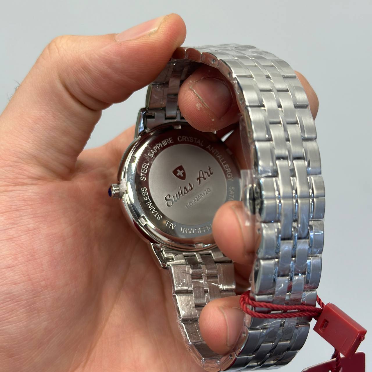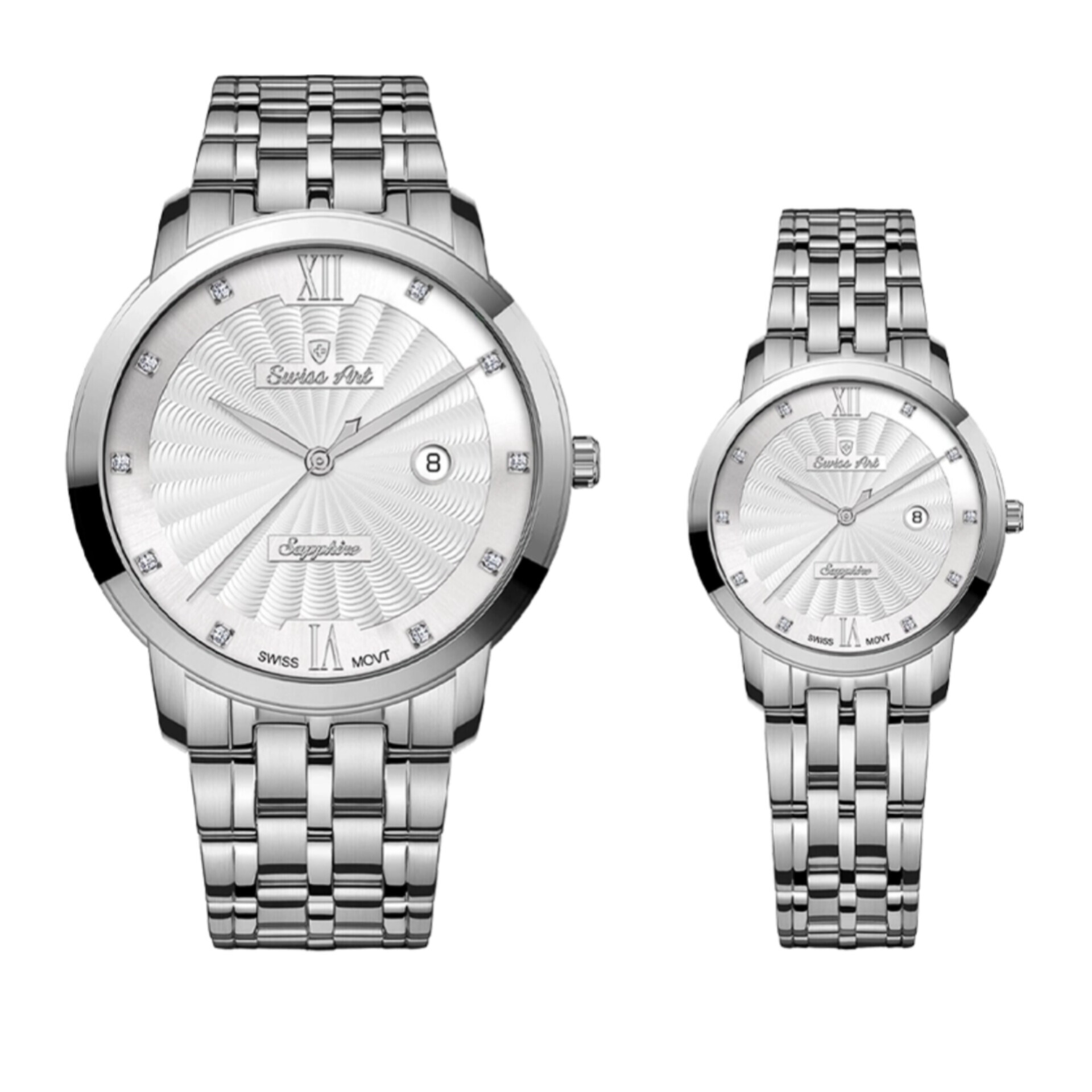 با ست بی‌نظیر ساعت مردانه و زنانه سوئیس آرت، شکوه و دقت را به دستان خود هدیه دهید. این مجموعه فاخر با موتور سوئیسی روندا، تضمین‌کننده عملکردی دقیق و پایدار است که هر ثانیه‌اش ارزشمند است. طراحی کلاسیک و درخشان صفحه ساعت با قابلیت نمایش تاریخ، همراه با بند استیل تمام نقره‌ای که جلوه‌ای از سادگی و شیک‌پسندی را به شما می‌بخشد، این ساعت‌ها را به انتخابی بی‌رقیب برای هر سلیقه‌ای تبدیل کرده است. شیشه ضد خش سافایر و مقاومت کامل در برابر آب، دوام و کیفیتی ماندگار را تضمین می‌کند تا در هر شرایطی همراه شما باشد. با دو سال ضمانت شرکتی و ضمانت مادام العمر اصالت کالا، این ست استثنایی بهترین گزینه برای کسانی است که به دنبال ترکیبی از ظرافت، کارایی و اطمینان هستند. با سوئیس آرت، هر لحظه خود را به لحظه‌ای ماندگار تبدیل کنید!