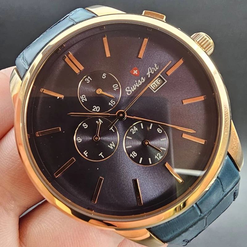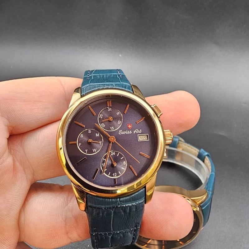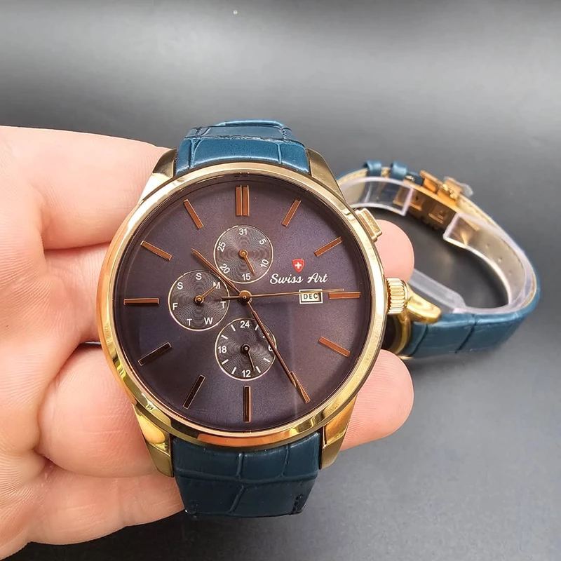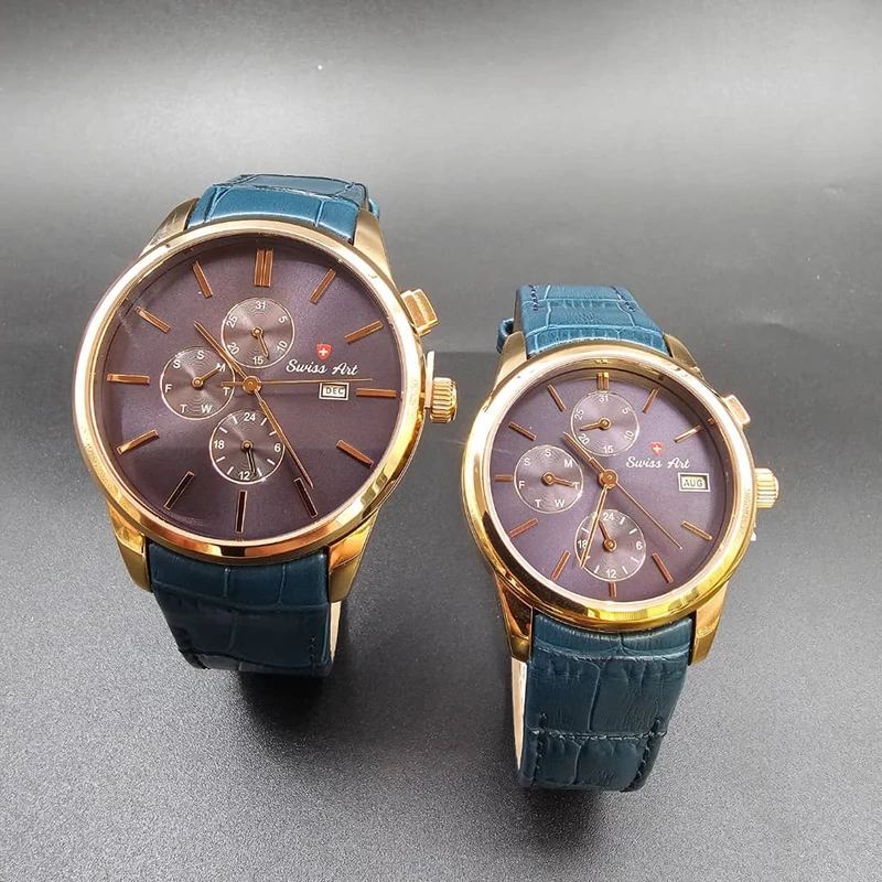 ست ساعت مردانه و زنانه سوئیس آرت با موتور فول دیت ژاپنی میوتا، تلفیقی بینظیر از دقت فنی، طراحی لوکس و کارایی بیوقفه است که هر لحظه را برای شما خاص و بهیادماندنی میکند. این مجموعه با صفحه سرمه ای جذاب و بند چرمی با کیفیت بالا، جلوهای از شیکپسندی و استحکام را به دستان شما میبخشد. قابلیت نمایش ساعت بیست و چهار ساعته، روز شمار هفته و تقویم، تمامی اطلاعات زمان را به صورت دقیق و جامع در اختیار شما قرار میدهد. شیشه ضد خش سافایر و بدنه کاملاً ضد آب، تضمینکننده دوام و عملکرد بینقص این ساعتها در هر شرایطی است. با دو سال ضمانت شرکتی و ضمانت مادامالعمر اصالت کالا، این ست خاص سوئیس آرت انتخابی وسوسهکننده، مطمئن و هیجانانگیز برای کسانی است که به دنبال ترکیبی از کیفیت، دوام و استایل بینظیر هستند. با سوئیس آرت، هر لحظه زندگی خود را با شکوه و جذابیتی خاص رقم بزنید و بدرخشید!