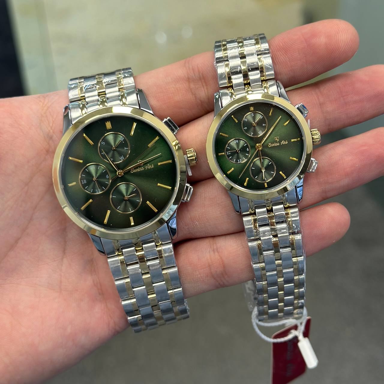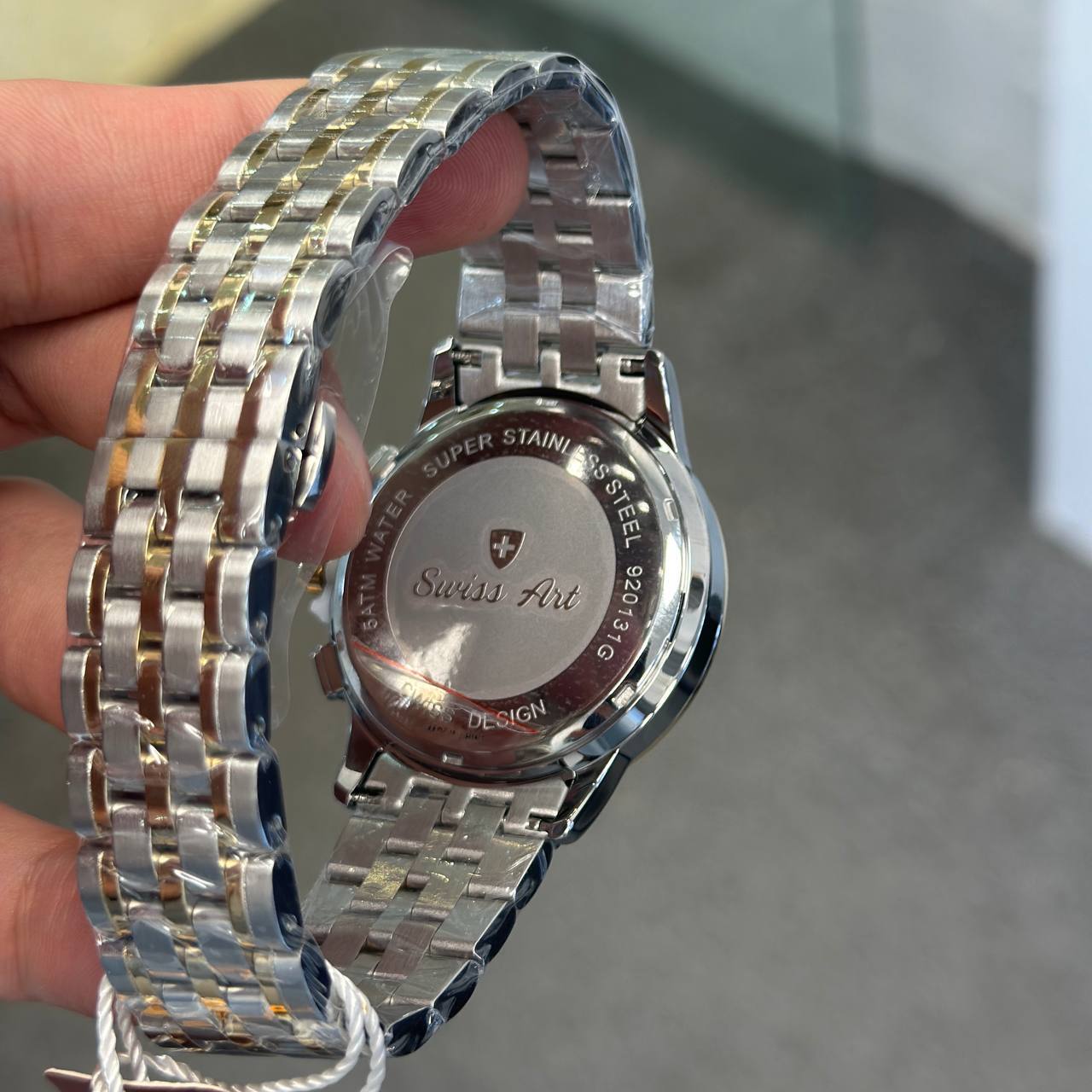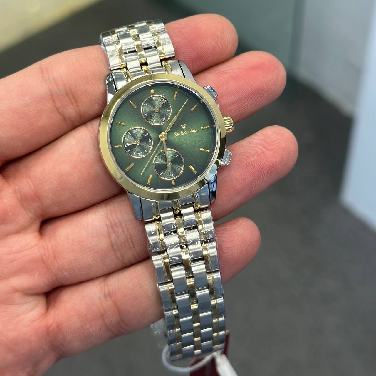 ست ساعت زنانه و مردانه سوئیس آرت با موتور فول دیت ژاپنی میوتا، نمادی از هماهنگی بی‌نظیر بین ظرافت و عملکرد حرفه‌ای است که هر دو جنسیت را با طراحی شیک و مدرن خود مجذوب می‌کند. این ست منحصر به فرد با قابلیت نمایش ۲۴ ساعته، روز شمار هفته و تقویم، دقت و کاربرد را در بالاترین سطح به نمایش می‌گذارد. صفحه سبز جذاب در کنار قاب طلایی و بند دو رنگ نقره‌ای و طلایی، ترکیبی چشم‌نواز و لوکس ایجاد کرده که هر نگاه را به خود جذب می‌کند. شیشه ضد خش سافایر مقاوم، حفاظت کامل از صفحه را تضمین می‌کند و ویژگی ضد آب بودن، امکان استفاده راحت و بدون دغدغه در شرایط مختلف را فراهم می‌آورد. با دوسال ضمانت شرکتی و ضمانت مادام العمر اصالت کالا، این ست ساعت سوئیس آرت نه تنها تضمینی برای کیفیت و اصالت است بلکه انتخابی وسوسه‌انگیز و هیجان‌انگیز برای کسانی است که به دنبال بهترین‌ها در استایل و کارایی هستند. اگر می‌خواهید یک جفت ساعت با همسرتان یا عزیزانتان داشته باشید که هم خاص باشد و هم شیک، این ست فوق‌العاده سوئیس آرت بهترین گزینه است!