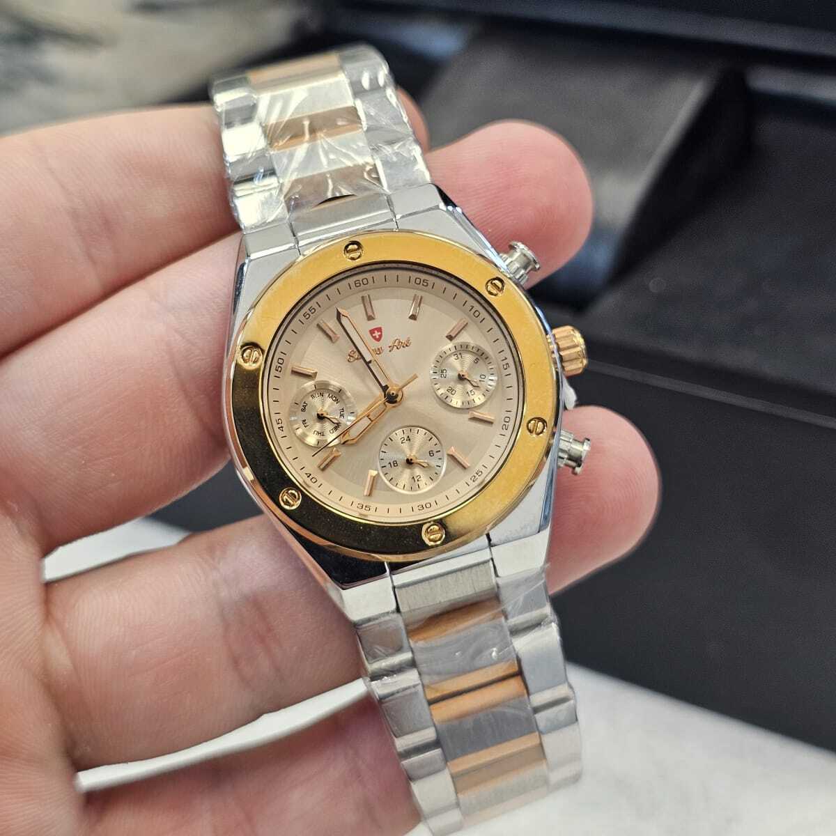 بهترین ترکیب از کیفیت، طراحی و قابلیتهای حرفهای در یک ساعت زنانه! ساعت زنانه از برند **سوئیس آرت** با موتور فول دیت ژاپنی میوتا. این ساعت نه تنها به عنوان یک ابزار دقیق برای زمان عمل میکند، بلکه یک اثر هنری است که به دستان شما افتخار بخشیده و شخصیت شما را به چشم میآورد. این ساعت با قابلیت نمایش ساعت، دقیقه، ثانیه، تقویم، روز شماره هفته و ساعت بیست و چهار ساعته، تمامی نیازهای شما را برآورده میکند. شیشه ضد خش سافایر و ضد اب، اطمینان به وجود آورده که ساعت شما در برابر ضربات خشن و تماس با آب، امنیت لازم را دارد. طراحی زیبا با بند فلزی این ساعت را به یک انتخاب مناسب برای همه موقعیتها تبدیل میکند، از جمله مهمانیها تا روزمره. همراه با **دو سال ضمانت شرکتی** و **ضمانت مادام العمر اصالت کالا**، این ساعت به شما اطمینان کاملی از کیفیت و اصل بودن محصول میدهد. این ساعت، انتخاب ایدهآلی برای علاقهمندان ساعتهای لوکس است که به دنبال یک ابزار دقیق و زیبا هستند. امیدواریم که این ساعت، انتخاب شما را به یک تجربه خاطرهانگیز تبدیل کند.