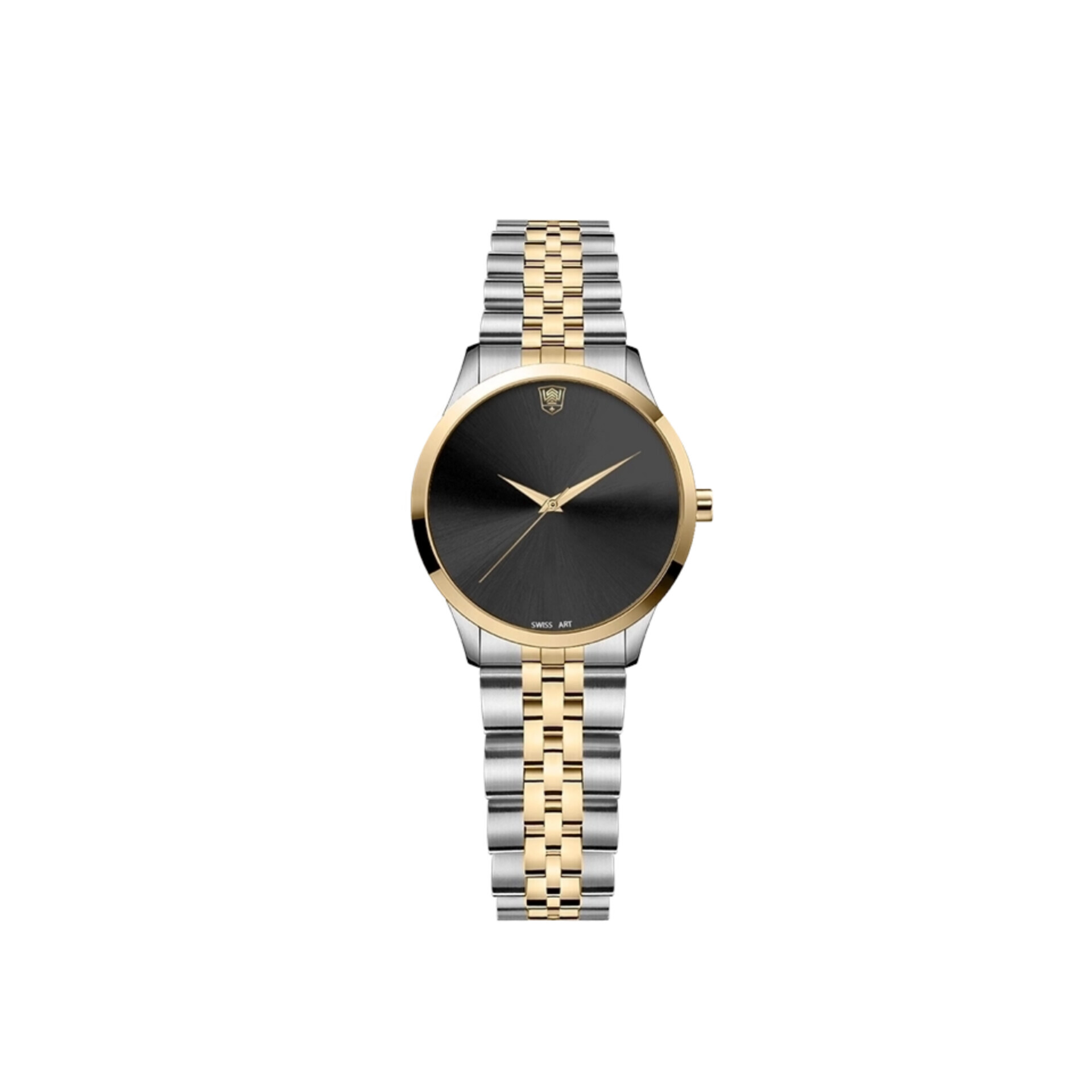 ساعت زنانه سوئیس آرت با ترکیب ظریف و شیک رنگ‌های طلایی و نقره‌ای، انتخابی بی‌نظیر برای خانم‌هایی است که به دنبال زیبایی و دوام بالا هستند. این ساعت با موتور دقیق سوئیسی روندا، عملکردی بی‌نقص و زمان‌سنجی استثنایی را تضمین می‌کند. صفحه مشکی زیبا با شیشه ضد خش سافایر، مقاومت بالایی در برابر خط و خش و ضربه دارد و بدنه کاملاً ضد آب، امکان استفاده مطمئن در شرایط مختلف را فراهم می‌آورد. بند استیل دو رنگ آن، ترکیبی از استحکام و ظرافت را به دستان شما می‌بخشد و دو سال ضمانت شرکتی همراه با ضمانت مادام‌العمر اصالت کالا، خریدی مطمئن و هیجان‌انگیز را برای شما تضمین می‌کند. با این ساعت زنانه سوئیس آرت، هر لحظه‌تان را به تجربه‌ای خاص، لوکس و ماندگار تبدیل کنید!