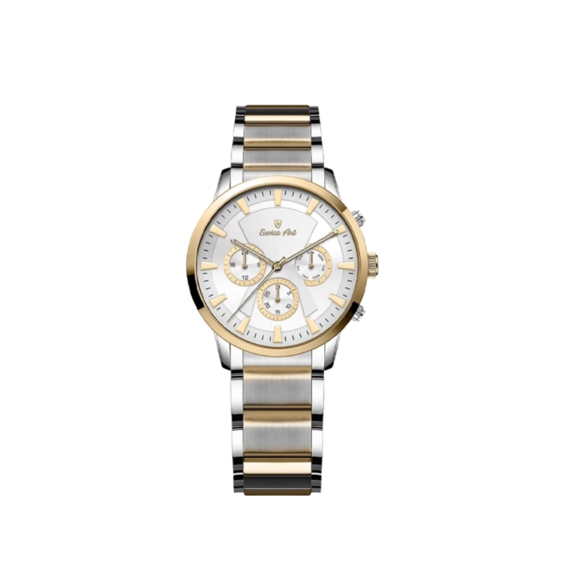 ساعت زنانه سوئیس آرت با موتور فول دیت ژاپنی میوتا، ترکیبی از دقت بینظیر و طراحی ظریف و شیک است که هر لحظه را برای شما خاص و خاطرهانگیز میکند. این ساعت با قابلیت نمایش ساعت بیست و چهار ساعته، روز شمار هفته و تقویم، تمامی اطلاعات زمان را به صورت جامع و دقیق در اختیار شما قرار میدهد. صفحه سفید با جزئیات طلایی و بند استیل دو رنگ طلایی و نقرهای، جلوهای از زیبایی و استحکام را به دستان شما هدیه میدهد. شیشه ضد خش سافایر مقاومت بالا در برابر خط و خش و ضربه را تضمین میکند و بدنه کاملاً ضد آب، امکان استفاده مطمئن و بدون نگرانی در هر شرایطی را فراهم میآورد. با دو سال ضمانت شرکتی و ضمانت مادامالعمر اصالت کالا، این ساعت زنانه سوئیس آرت انتخابی خاص، مطمئن و هیجانانگیز برای خانمهایی است که به دنبال ترکیبی از کیفیت، دوام و استایل بینظیر هستند. با این ساعت، هر لحظه زندگی خود را با شکوه و جذابیتی خاص رقم بزنید!