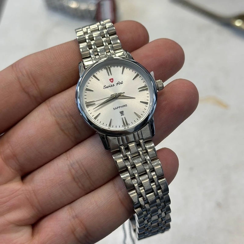 ساعت زنانه سوئیس آرت، ترکیبی بینظیر از ظرافت و تکنولوژی پیشرفته است که با موتور ژاپنی دقیق و قدرتمند خود، همیشه زمان را به بهترین شکل برای شما نمایش میدهد. این ساعت شیک با قابلیت نمایش تاریخ، نه تنها یک ابزار کاربردی بلکه یک جواهر تمام عیار برای دستان شماست. شیشه ضد خش سافایر آن، مقاومت بینظیری در برابر خط و خشهای روزمره ایجاد میکند و طراحی ضد آب این ساعت، خیال شما را از هر شرایط آب و هوایی راحت میسازد. همراه با دو سال ضمانت شرکتی و ضمانت مادام العمر اصالت کالا، این ساعت نماد کیفیت و اعتماد است که هر خانمی آرزوی داشتن آن را دارد. حالا زمان آن است که با این ساعت خاص و جذاب، استایل خود را به سطحی جدید ارتقا دهید و در هر جمعی بدرخشید!