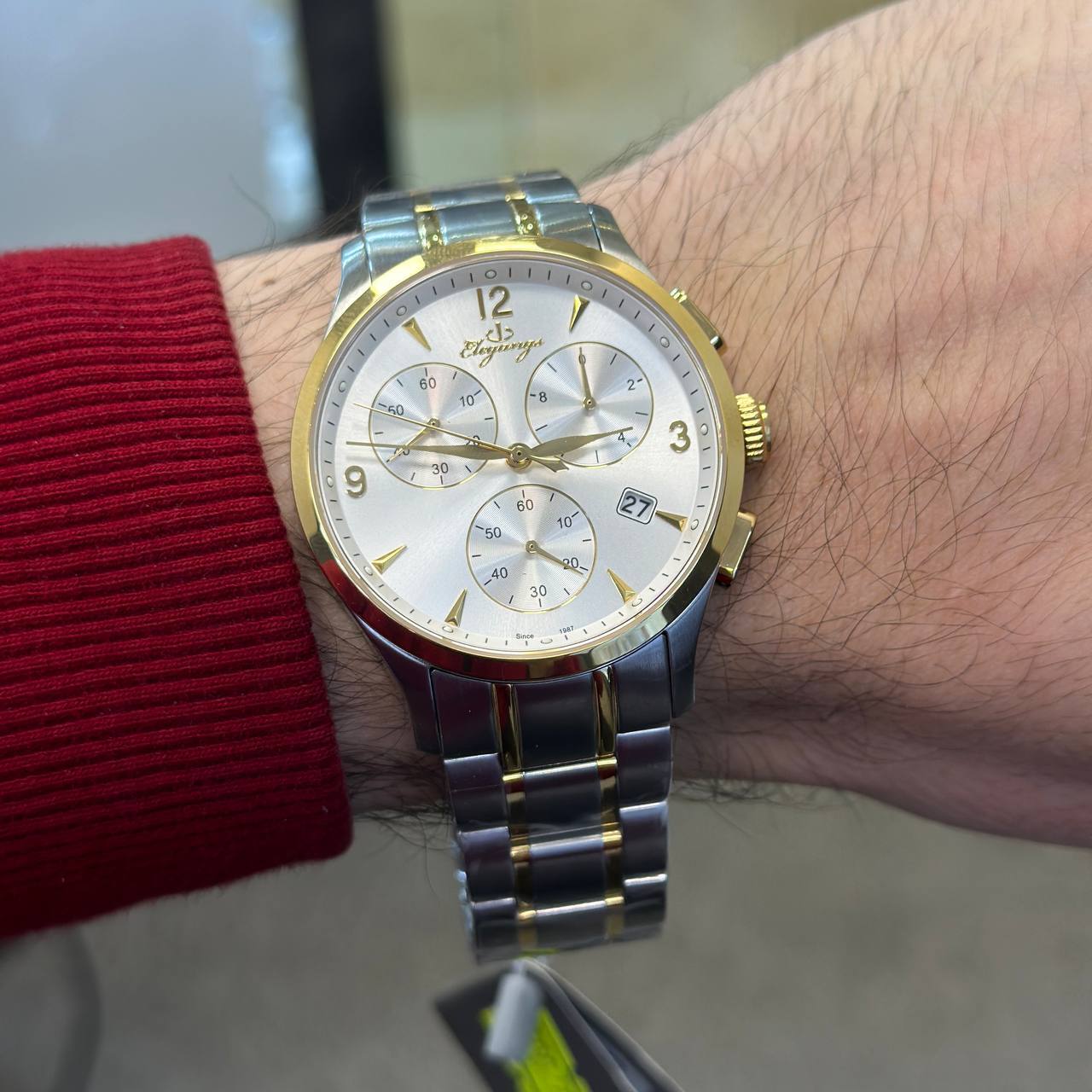 ساعت مردانه الگنگس، انتخابی فوقالعاده برای کسانی که به دنبال ترکیب زیبایی، دقت و کیفیت در یک محصول لوکس هستند! با موتور میوتا کرنوگراف دقیق و عملکرد بینقص، این ساعت زمان را با دقتی مثالزدنی اندازهگیری میکند. بند استیل ترکیبی از رنگهای نقرهای و طلایی، ظاهری شیک و مدرن به این ساعت بخشیده و شیشه ضد خش سافایر، دوام و مقاومت بالای آن را تضمین میکند. این ساعت ضد آب بوده و با دو سال ضمانت شرکتی و ضمانت مادامالعمر اصالت، به شما اطمینان میدهد که از آن در طولانیمدت بهرهمند خواهید شد. ساعت الگنگس، نمادی از استایل و دقت است که شما را در هر موقعیتی متمایز میسازد. همین حالا این ساعت شیک و باکیفیت را به دستان خود ببندید و از هر لحظه لذت ببرید!