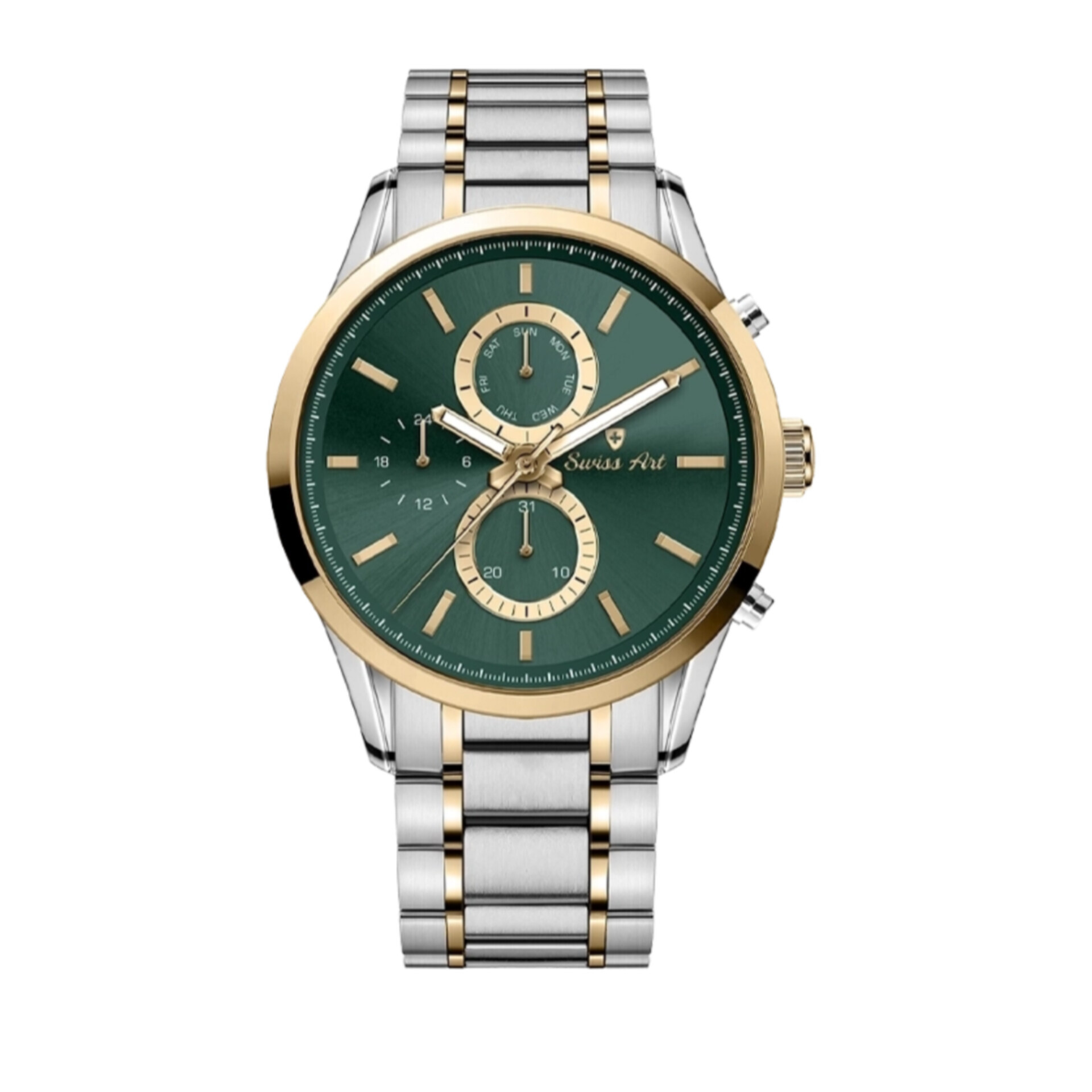 این ساعت مردانه از برند سوئیس آرت، نمادی از هماهنگی بین طراحی لوکس و عملکرد دقیق است. با بدنهای مدرن و لمسات طلایی، این ساعت به شما اجازه میدهد تا با یک ابزار زیبا و قابلیتپذیر، حضور خود را در هر موقعیتی از جمله مراسم های رسمی تا روزمره، بهتر نمایش دهید. قلب این ساعت، موتور فول دیت ژاپنی میوتا (Miyota) است که به عنوان نمادی از ثبات و دقت بالا شناخته شدهاست. این ساعت قابلیت نمایش ساعت 24گانه، روز شماره هفته و تقویم را داراست، که آن را مناسب برای استفادههای روزمره و حرفهای میکند. صفحه نمایش سبز با خطوط طلایی، ظاهری شیک و کلاسیک به این ساعت میدهد که با تمامی ستهای مختلف هماهنگ میشود. شیشه ساعت از مواد ضد خش سافایر (Sapphire Crystal) ساخته شده است، که مقاومت بالایی در برابر ضربات و خوردگی دارد. همچنین، ویژگی ضد آب این ساعت، اطمینان استفاده راحت در شرایط مختلف را فراهم میکند. سوئیس آرت این محصول را با 2 سال ضمانت شرکتی و ضمانت مادامالعمر اصالت کالا ارائه میدهد، تا خرید شما بدون هیچ نگرانی همراه باشد. این ساعت، انتخاب ایدهآلی برای مردانی است که به دنبال یک اکسسوری هوشمند، لوکس و با کیفیت هستند. **بهترین انتخاب برای افرادی که به سبک واقعی و کیفیت عالی علاقه دارند!**