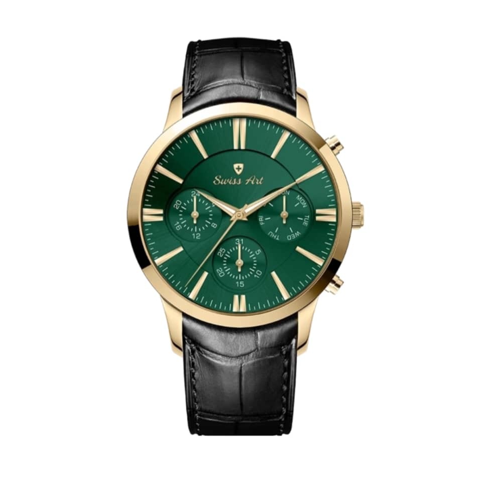 ساعت مردانه سوئیس آرت با صفحه سبز خاص و جذاب، ترکیبی خیرهکننده از اصالت، جسارت و وقار مردانه است. این مدل با بند چرمی باکیفیت و طراحی کلاسیک، استایلی شیک و حرفهای را برای شما به ارمغان میآورد. موتور دقیق فول دیت ژاپنی میوتا امکاناتی نظیر نمایش ۲۴ ساعته، روز هفته، شماره روز و تقویم را با دقت بالا ارائه میدهد و شما را در هر لحظه از روز همراهی میکند. شیشهی مقاوم سافایر ضد خش و بدنهی ضد آب، این ساعت را به انتخابی بادوام و قابل اعتماد در تمامی شرایط تبدیل کرده است. این محصول با دو سال ضمانت شرکتی و ضمانت مادامالعمر اصالت کالا، نهتنها یک ابزار زمانسنج، بلکه بیانی از شخصیت، سلیقه و اعتماد به نفس شماست.
