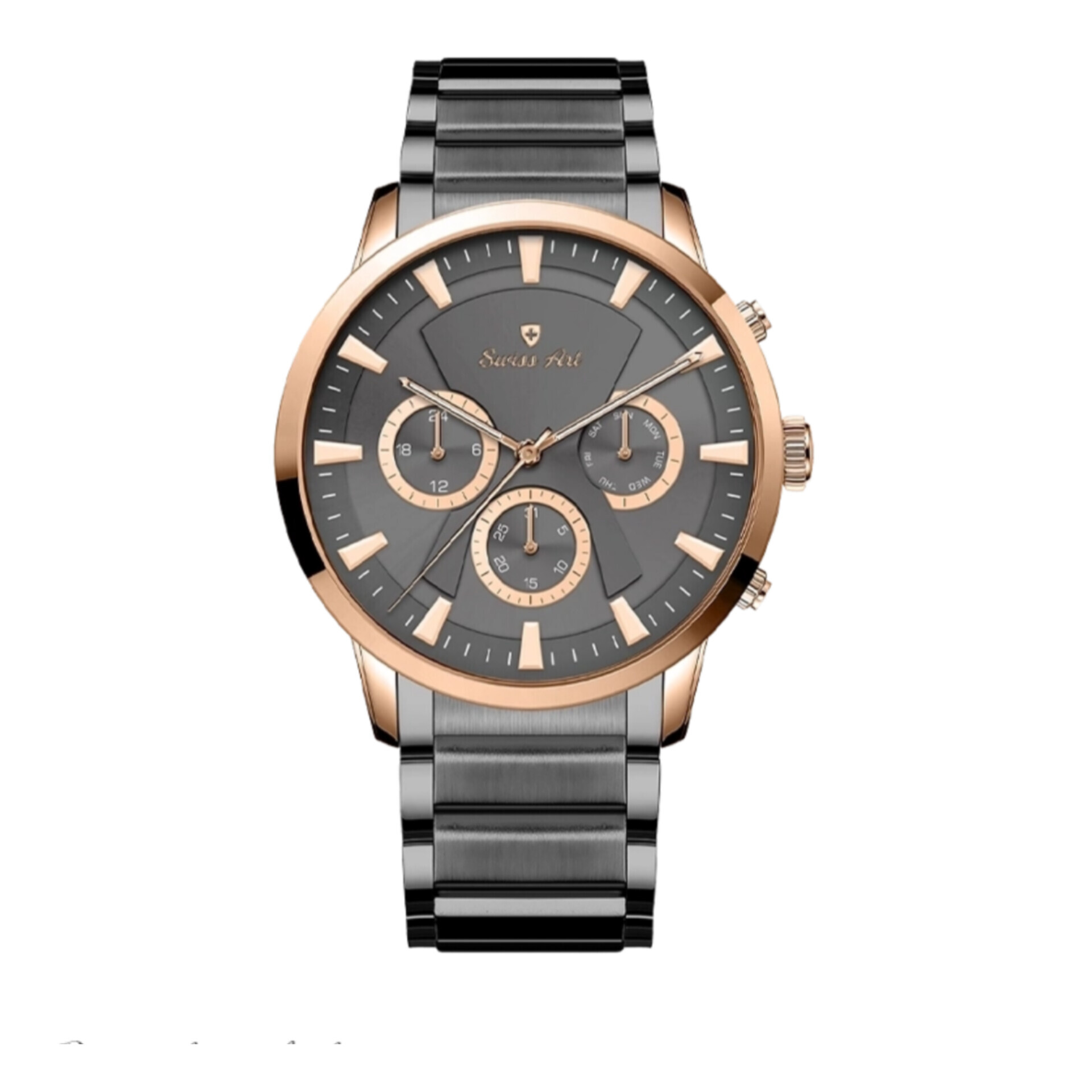 ساعت مردانه سوئیس آرت با موتور فول دیت ژاپنی میوتا، تلفیقی بی‌نظیر از دقت فوق‌العاده و طراحی مدرن است که هر لحظه را برای شما خاص و به‌یادماندنی می‌کند. این ساعت با قابلیت نمایش ساعت بیست و چهار ساعته، روز شمار هفته و تقویم، تمامی اطلاعات زمان را به شکل جامع و دقیق در اختیار شما قرار می‌دهد. صفحه خاکستری زیبا با جزئیات رزگلد و بند فلزی مشکی، جلوه‌ای از استحکام و شیک‌پوشی را به دستان شما می‌بخشد. شیشه ضد خش سافایر، مقاومت بالایی در برابر خط و خش و ضربه دارد و بدنه کاملاً ضد آب، امکان استفاده مطمئن در هر شرایطی را فراهم می‌آورد. با دو سال ضمانت شرکتی و ضمانت مادام‌العمر اصالت کالا، این ساعت مردانه سوئیس آرت انتخابی خاص، مطمئن و هیجان‌انگیز برای کسانی است که به دنبال ترکیبی از کیفیت، دوام و استایل بی‌نظیر هستند. با این ساعت، هر لحظه‌تان به تجربه‌ای لوکس و ماندگار تبدیل خواهد شد!