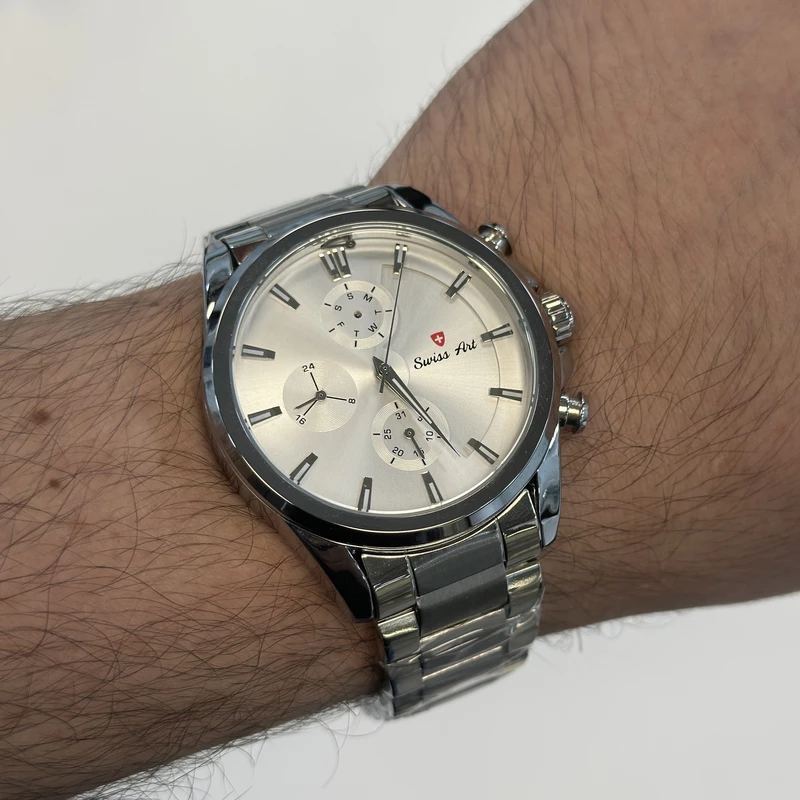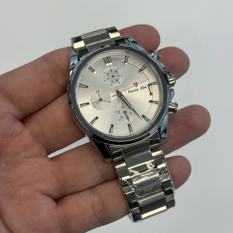 ساعت مردانه سوئیس آرت با موتور فول دیت ژاپنی میوتا، تلفیقی بینظیر از دقت فنی بیرقیب و طراحی کلاسیک و لوکس است که هر لحظه را برای شما خاص و بهیادماندنی میکند. این ساعت با صفحه سفید براق و بند استیل نقرهای مقاوم، جلوهای از شکوه و استایل بینظیر را به دستان شما میبخشد. قابلیت نمایش ساعت بیست و چهار ساعته، روز شمار هفته و تقویم، تمامی اطلاعات زمان را به شکلی جامع و دقیق در اختیار شما قرار میدهد. شیشه ضد خش سافایر، محافظت بینظیری در برابر خط و خش و ضربه ارائه میدهد و بدنه کاملاً ضد آب، امکان استفاده مطمئن و بدون نگرانی در هر شرایطی را فراهم میآورد. با دو سال ضمانت شرکتی و ضمانت مادامالعمر اصالت کالا، این ساعت مردانه سوئیس آرت انتخابی وسوسهکننده، مطمئن و هیجانانگیز برای کسانی است که به دنبال ترکیبی از کیفیت، دوام و استایل بینظیر هستند. با این ساعت، هر لحظه زندگی خود را با شکوه، دقت و جذابیتی خاص رقم بزنید و به دنیای لوکس و بینظیر سوئیس آرت قدم بگذارید!