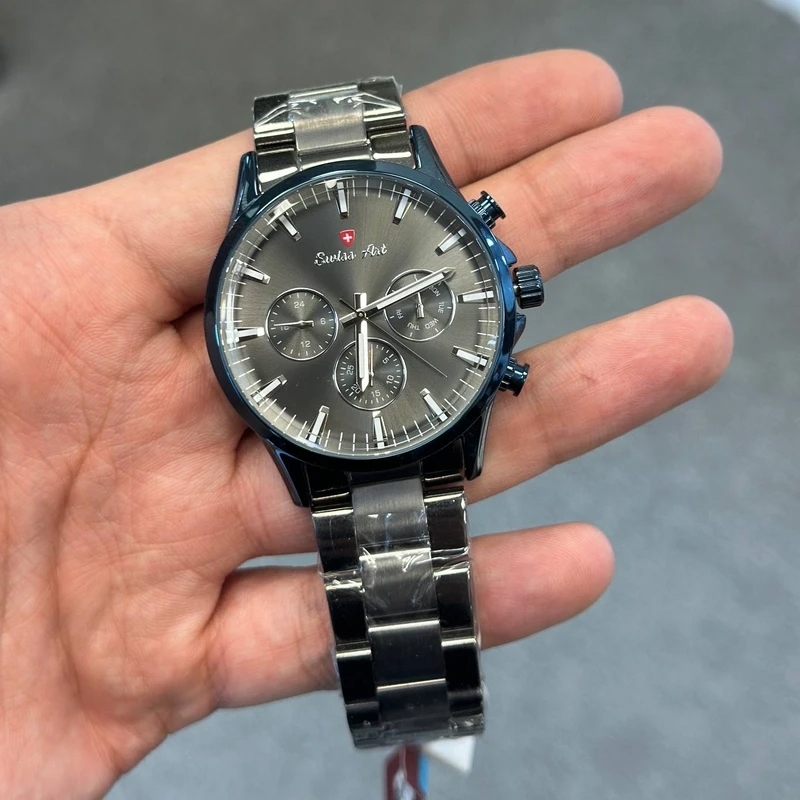 ساعت مردانه سوئیس آرت با موتور فول دیت ژاپنی میوتا، تجسمی از دقت، عملکرد پیشرفته و طراحی مدرن است که هر مرد شیکی را به خود جذب میکند. این ساعت با قابلیت نمایش ۲۴ ساعته، روز شمار هفته و تقویم، ابزار کاملی برای مدیریت دقیق زمان در اختیار شما قرار میدهد. صفحه خاکستری جذاب همراه با بند استیل مشکی، ظاهری بینظیر و خیرهکننده ایجاد کرده که هر نگاه را به خود جلب میکند. شیشه ضد خش سافایر مقاوم در برابر خط و خش و ضربههای روزمره، تضمین میکند که زیبایی و شفافیت ساعت در طول زمان حفظ شود. ویژگی ضد آب بودن این مدل، امکان استفاده مطمئن و بدون دغدغه در شرایط مختلف را فراهم میآورد. با دوسال ضمانت شرکتی و ضمانت مادام العمر اصالت کالا، این ساعت مردانه سوئیس آرت نمادی از کیفیت و اصالت برند است و انتخابی هیجانانگیز، خاص و وسوسهکننده برای تکمیل کلکسیون یا هدیهای ماندگار به شمار میآید. اگر به دنبال ساعتی خاص، مقاوم و جذاب هستید که استایل شما را به بهترین شکل تکمیل کند، این مدل بینظیر بهترین گزینه برای شماست!