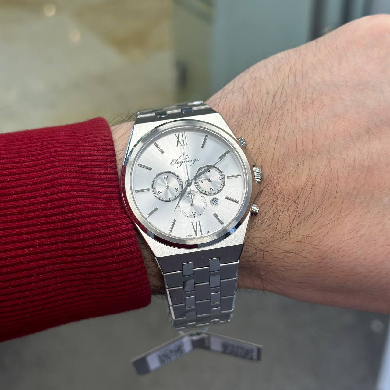 ست ساعت مردانه و زنانه الگنگس، ترکیبی عالی از دقت، زیبایی و کارایی است که برای زوجهای شیکپسند طراحی شده است. با موتور میوتا کرنوگراف دقیق و بند استیل مقاوم، این ساعتها عملکرد عالی و ظاهری خاص را در کنار هم ارائه میدهند. شیشه ضد خش سافایر و قابلیت ضد آب بودن، تضمین میکند که این ساعتها در هر شرایطی همراه شما خواهند بود. طراحی زیبا و رنگ نقرهای با جزئیات برجسته، هر نگاهی را به خود جلب میکند و به استایل شما جلوهای خاص میبخشد. با ضمانت دو ساله شرکتی و ضمانت مادام العمر اصالت، این ست ساعتها انتخابی مطمئن و شیک برای هر موقعیت است. همین حالا این فرصت را از دست ندهید و به استایل خود رنگ و زندگی جدیدی بدهید!