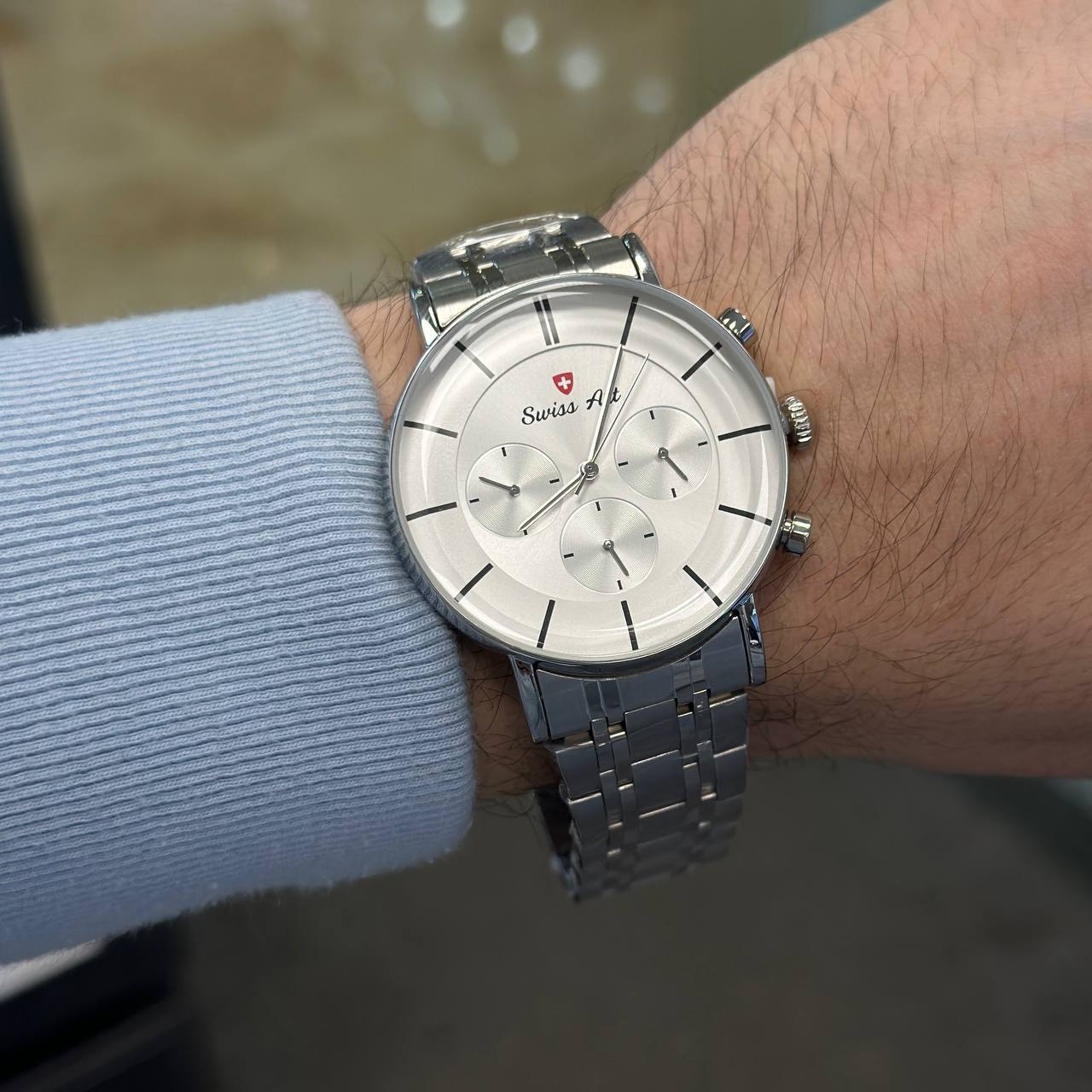 ست ساعت مردانه و زنانه سوئیس آرت، طراحی شده برای کسانی که به دقت، کیفیت و زیبایی اهمیت می‌دهند. این ساعت‌ها با موتور فول دیت ژاپنی، دقت بالایی را به شما میدهد. صفحه سفید با طراحی مینیمالیستی و بند استیل مقاوم، این ساعت‌ها را به گزینه‌ای شیک و مناسب برای هر استایلی تبدیل کرده است. شیشه ضد خش سافایر محافظت عالی از صفحه ساعت را تضمین کرده و از آسیب‌های روزمره جلوگیری می‌کند. این ساعت‌ها ضد آب هستند و در هر شرایطی قابل استفاده می‌باشند. با دو سال ضمانت شرکتی و ضمانت مادام‌العمر اصالت کالا، شما از خریدی مطمئن و بدون دغدغه بهره‌مند خواهید شد. همین حالا این ست زیبا و باکیفیت را از فروشگاه ما خریداری کنید و از دقت و طراحی عالی آن لذت ببرید.