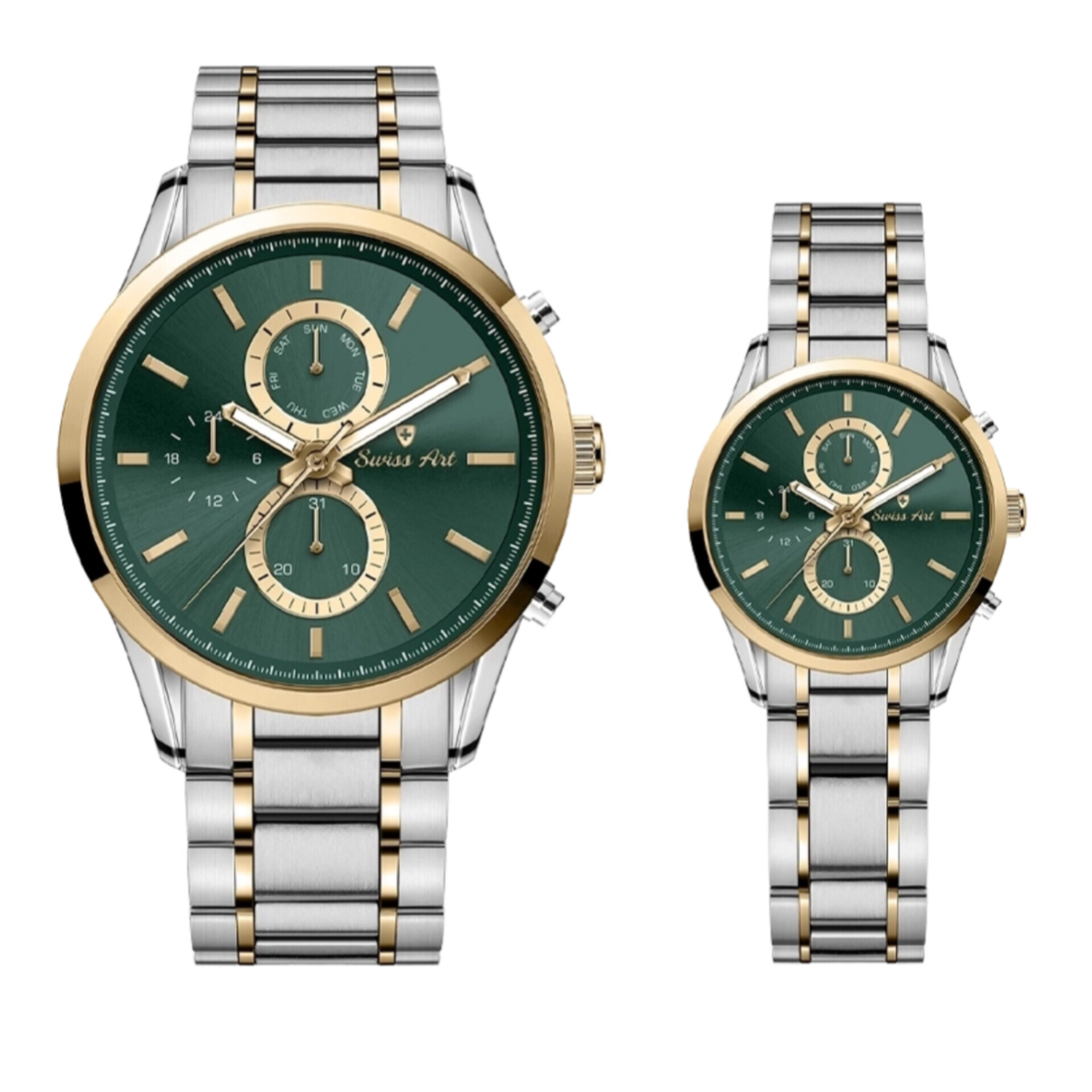 ست ساعت زنانه و مردانه از برند **سوئیس آرت** با موتور میوتا ژاپنی فول تایم، نمادی از کیفیت، دقت و طراحی شیک است. ساعتها مجهز به قابلیت نمایش ساعت بیست و چهار ساعته، روز شماره هفته و تقویم هستند، که به شما اطمینان میدهد که هر لحظه روزانه را به صورت دقیق و منظم پیگیری کنید. شیشه ضد خش سافایر (Sapphire Crystal) و مقاومت در برابر آب، این ساعتها را به محصولاتی مدرن تبدیل میکند که بهترین عملکرد را حتی در شرایط سخت روزمره ارائه میدهند. با طراحی لوکس و کلاسیک، این ساعتها به عنوان یک اکسسوری اصلی و ضروری برای تمامی مناسبات، از مهمانیها تا روزانهها، مناسب هستند. به همراه **دو سال ضمانت شرکتی** و **ضمانت مادام العمر اصالت کالا**، این ست ساعت به شما اطمینان از ارزش و کیفیت بالا را میدهد. این محصولات از یک برند مشهور و با سابقه، به شما اجازه میدهد که به عنوان یک اکسسوری زیبایی واقعی و همچنین یک ابزار دقیق، از این ساعتها استفاده کنید. از امروز، بهترین انتخاب برای خود و عزیزانتان را با ست ساعت زنانه و مردانه سوئیس آرت دریافت کنید و به دنبال یک اکسسوری که هم زیباست و هم عملکرد بالایی دارد، نگاه کنید. این ست ساعت، انتخابی استثنایی برای هر کسی است که به دنبال یک ابزار دقیق و زیبا هستند. این محصولات به شما اطمینان میدهند که هر لحظه روزانه را به صورت دقیق و زیبا پیگیری کنید.