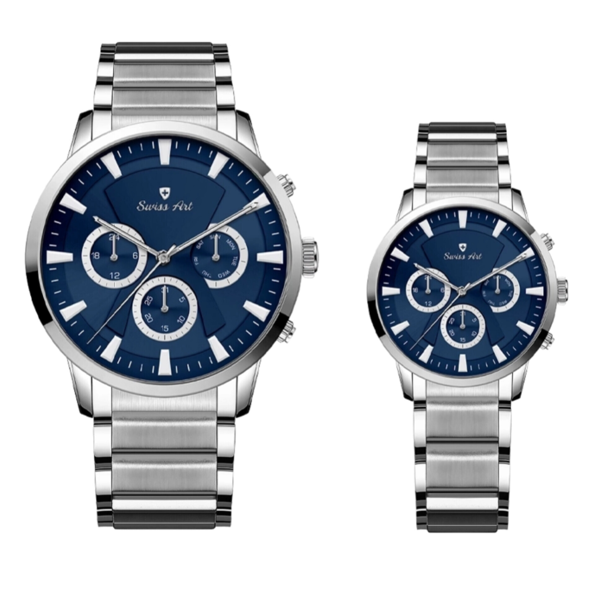 ست ساعت زنانه و مردانه از برند **سوئیس آرت** با موتور میوتا ژاپنی فول تایم، نمادی از هماهنگی، کیفیت بالا و طراحی لوکس است. ساعتها بهطور کامل مجهز به قابلیت نمایش ساعت بیست و چهار ساعته، روز شماره هفته و تقویم هستند، که به شما اطمینان میدهد که تمام لحظات روزانه را به صورت دقیق و منظم پیگیری کنید. صفحه ساعت با رنگ سرمهای و شیشه ضد خش سافایر (Sapphire Crystal)، این محصول را به یک ابزار مدرن تبدیل میکند که در برابر خوردگی و خشهای روزمره مقاوم است. بند استیل با طراحی شیک و کلاسیک، به این ساعتها یک احساس استحکام و مدرنیت اضافه میکند. به همراه ویژگی ضدآب، این ساعتها به شما اطمینان میدهند که در تمام شرایط روزانه عملکرد مطلوبی دارند. این ست ساعت با **دو سال ضمانت شرکتی** و **ضمانت مادام العمر اصالت کالا**، گواهی بیبدیلی بر کیفیت و ارزش آن است. این محصولات از یک برند مشهور و با سابقه، به شما اجازه میدهند که به عنوان یک اکسسوری زیبایی واقعی و همچنین یک ابزار دقیق، از این ساعتها استفاده کنید. از امروز، بهترین انتخاب برای خود و عزیزانتان را با ست ساعت زنانه و مردانه سوئیس آرت دریافت کنید و به دنبال یک اکسسوری که هم زیباست و هم عملکرد بالایی دارد، نگاه کنید. این محصولات به شما اطمینان میدهند که هر لحظه روزانه را به صورت دقیق و زیبا پیگیری کنید.