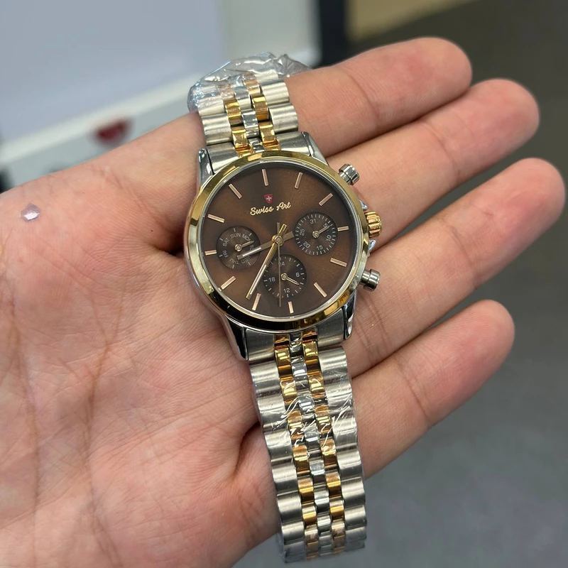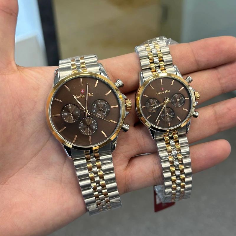 ست ساعت مردانه و زنانه سوئیس آرت با موتور فول دیت ژاپنی میوتا، ترکیبی بینظیر از دقت، کیفیت و طراحی شیک و خاص است که هر لحظه را برای شما خاطرهانگیز میکند. این مجموعه با قابلیت نمایش ساعت بیست و چهار ساعته، روز شمار هفته و تقویم، تمامی اطلاعات زمان را به صورت دقیق و جامع در اختیار شما قرار میدهد. صفحه قهوهای زیبا با جزئیات رزگلد و بند استیل دو رنگ نقرهای و طلایی، جلوهای از شکوه و ظرافت را به دستان شما هدیه میدهد. شیشه ضد خش سافایر مقاومت بالایی در برابر خط و خش و ضربه دارد و بدنه کاملاً ضد آب، امکان استفاده مطمئن در هر شرایطی را فراهم میآورد. همراه با دو سال ضمانت شرکتی و ضمانت مادامالعمر اصالت کالا، این ست خاص سوئیس آرت، انتخابی مطمئن، هیجانانگیز و خاص برای کسانی است که به دنبال ترکیبی از کیفیت، دوام و استایل بینظیر هستند. با سوئیس آرت، هر لحظه زندگی خود را به فرصتی برای درخشش و جذابیت تبدیل کنید!